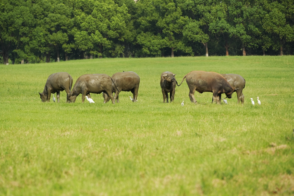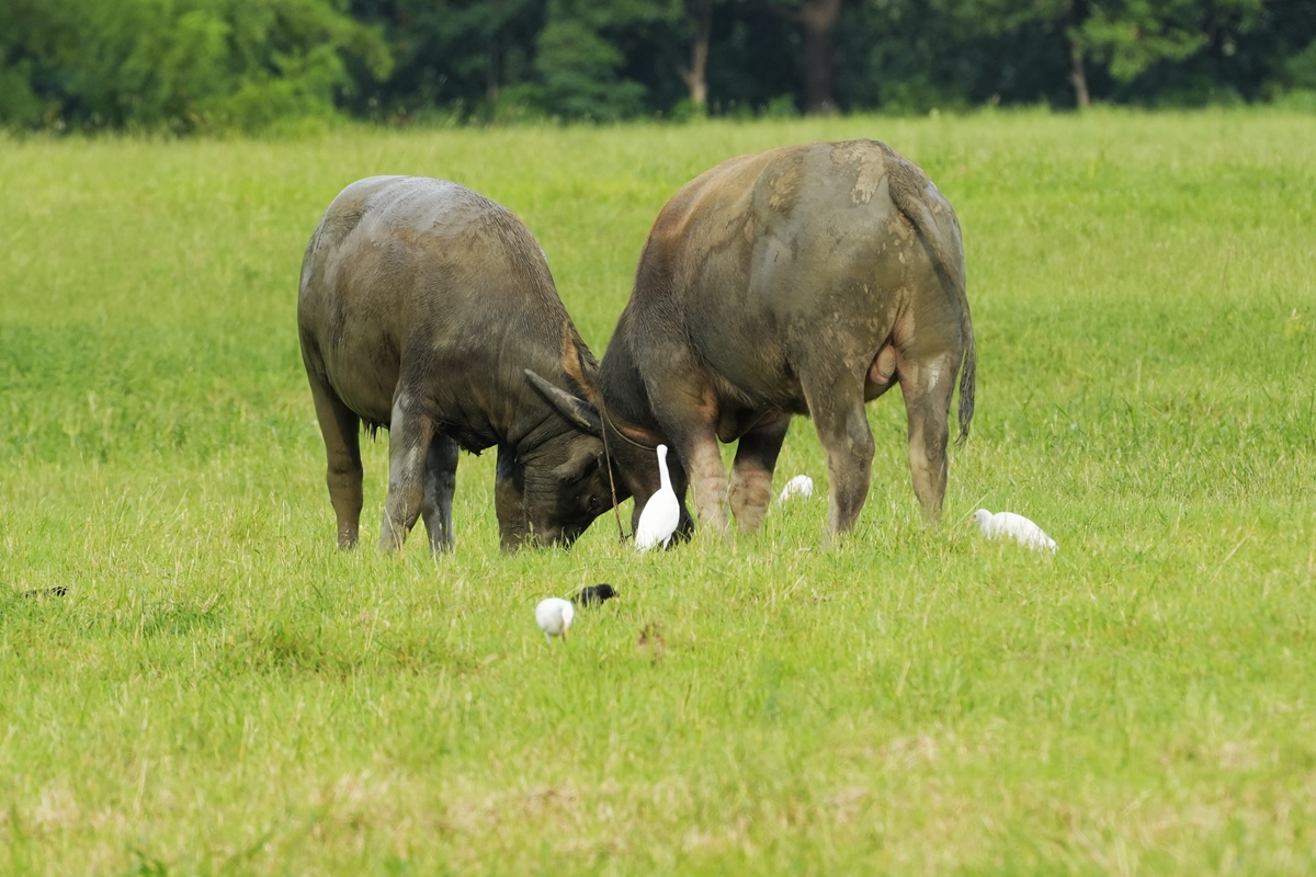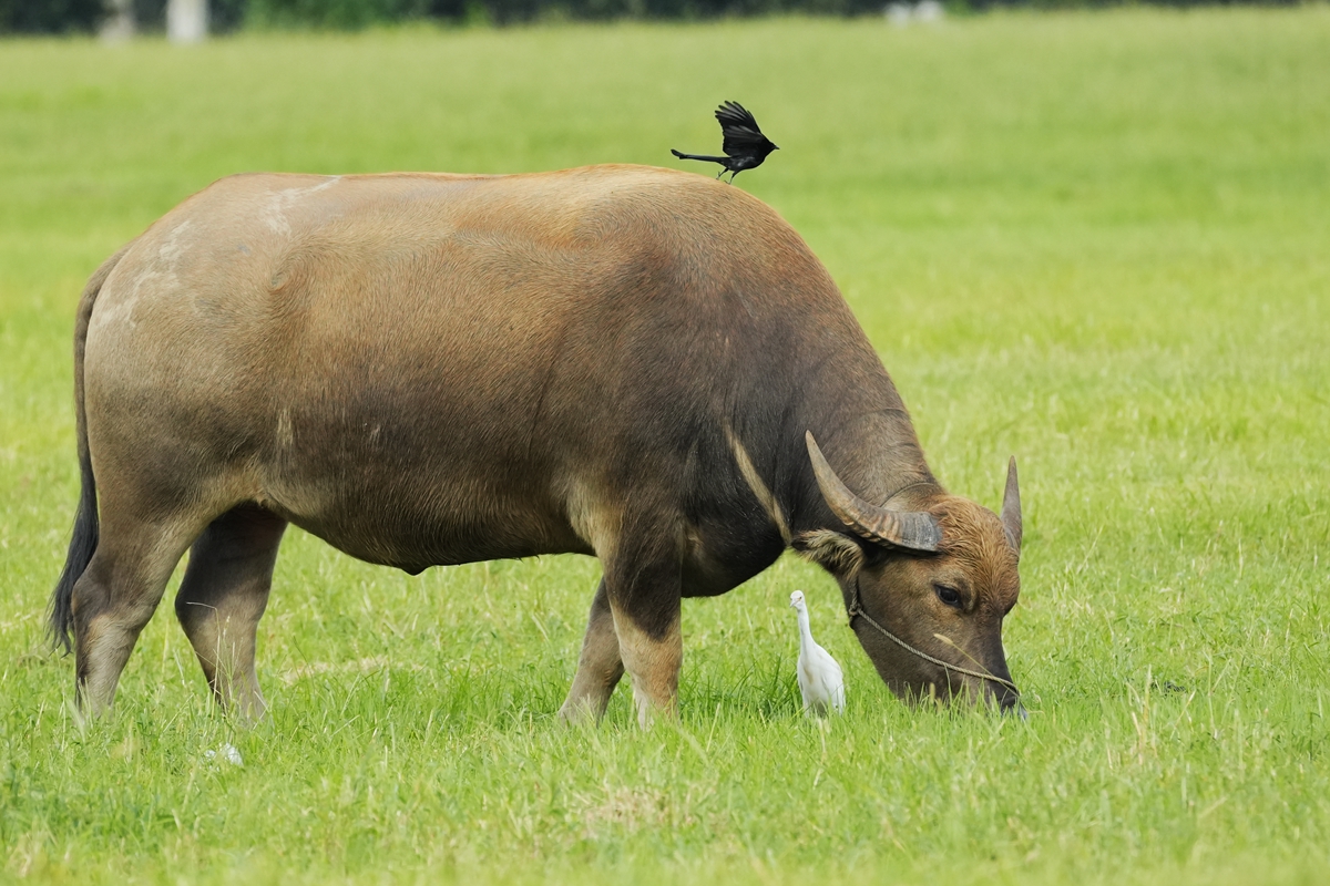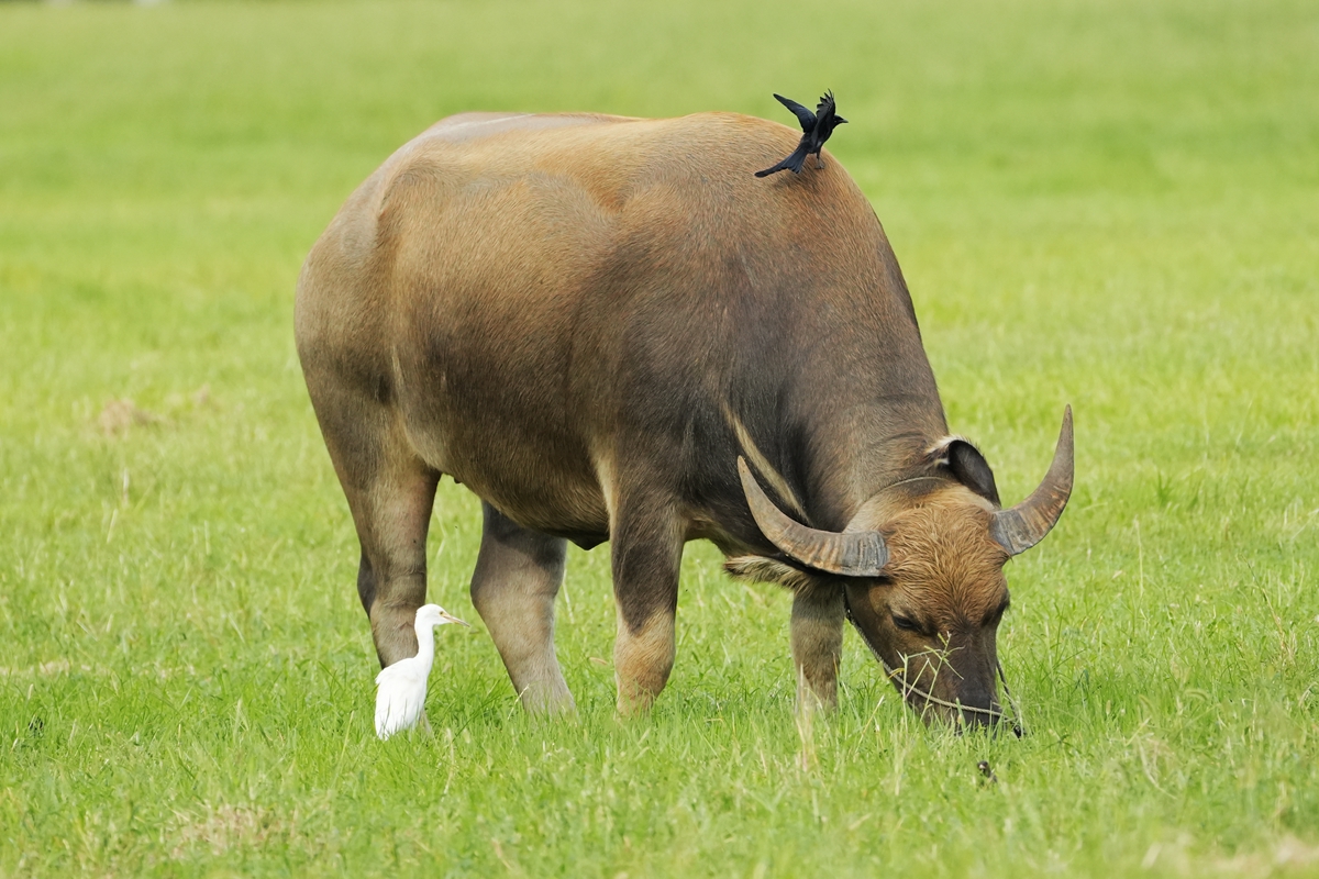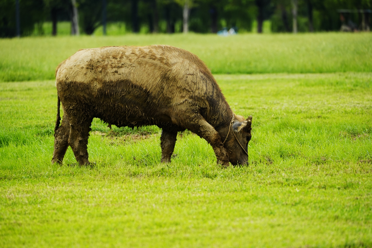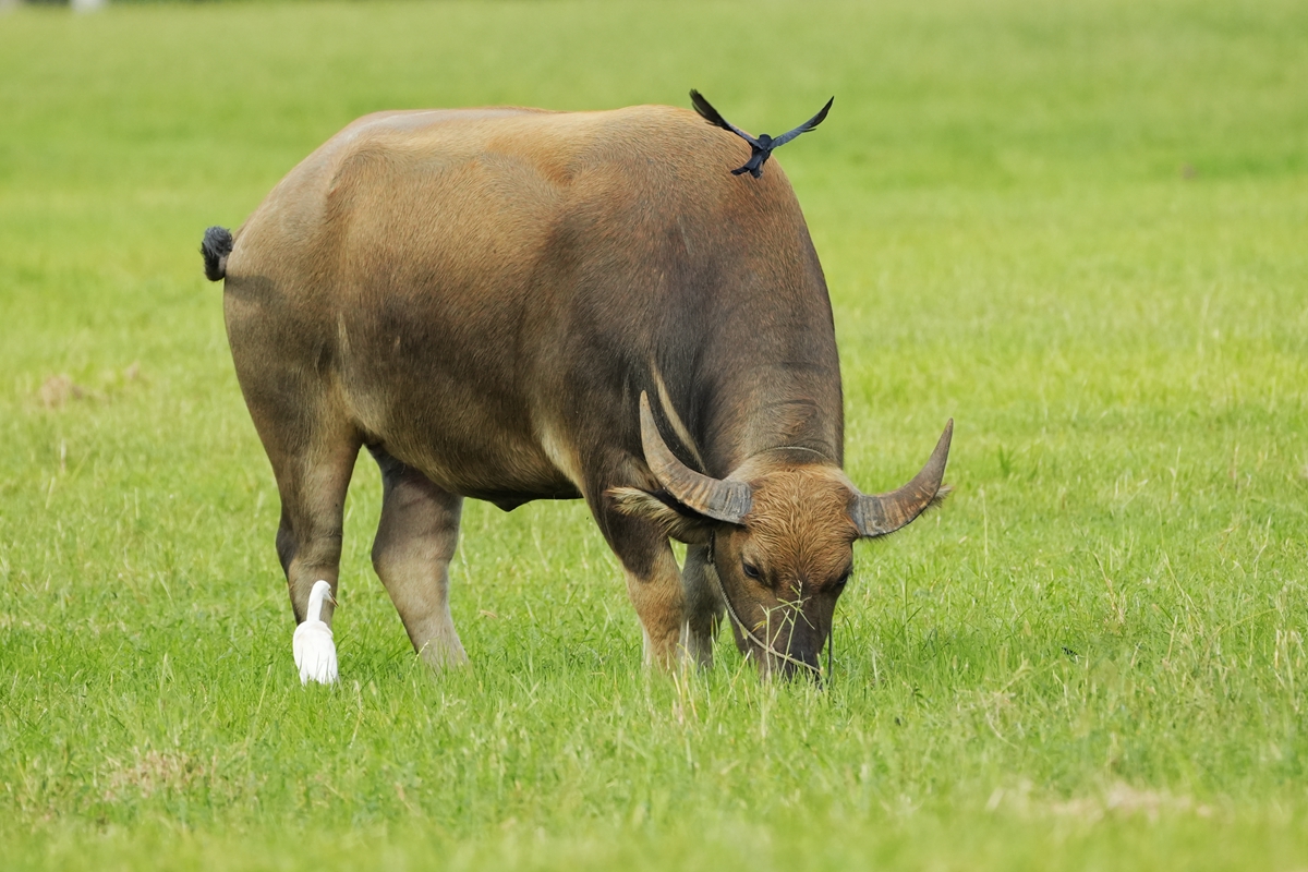 路过丁卯大䓍地,牛丁兴旺,䓍长鹭飞,捏几张