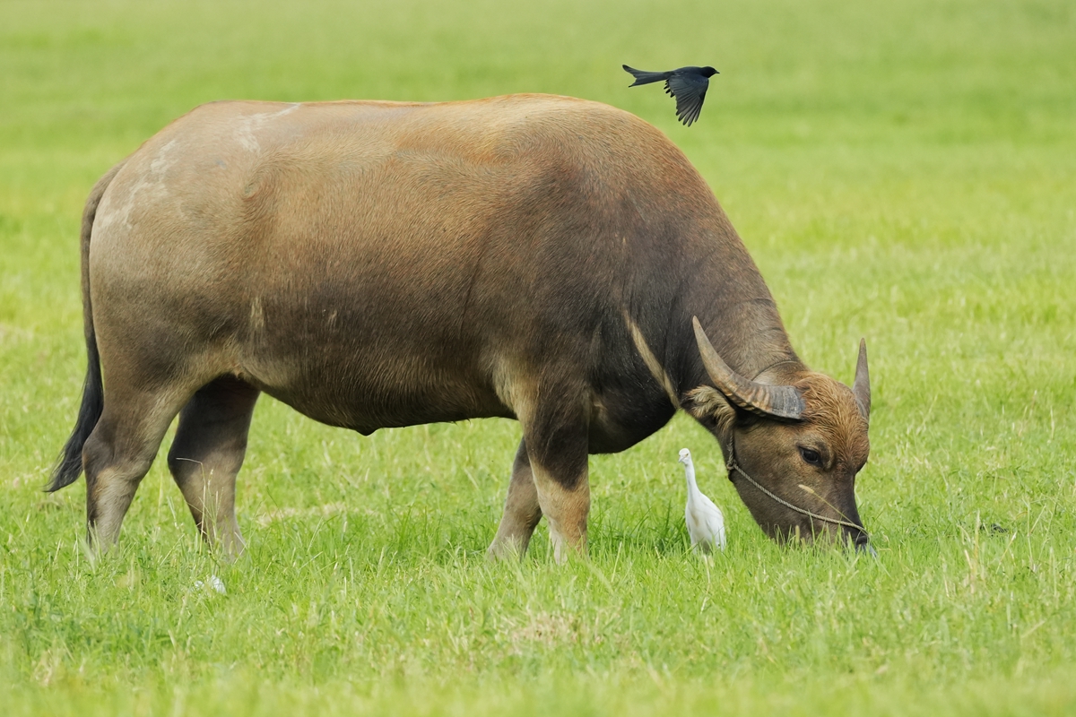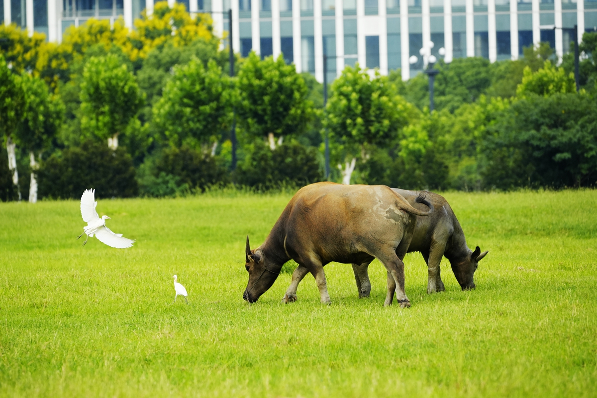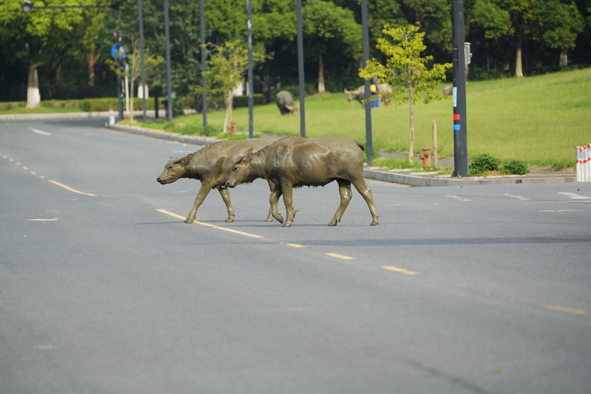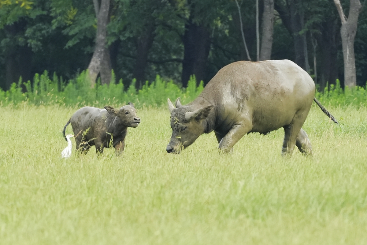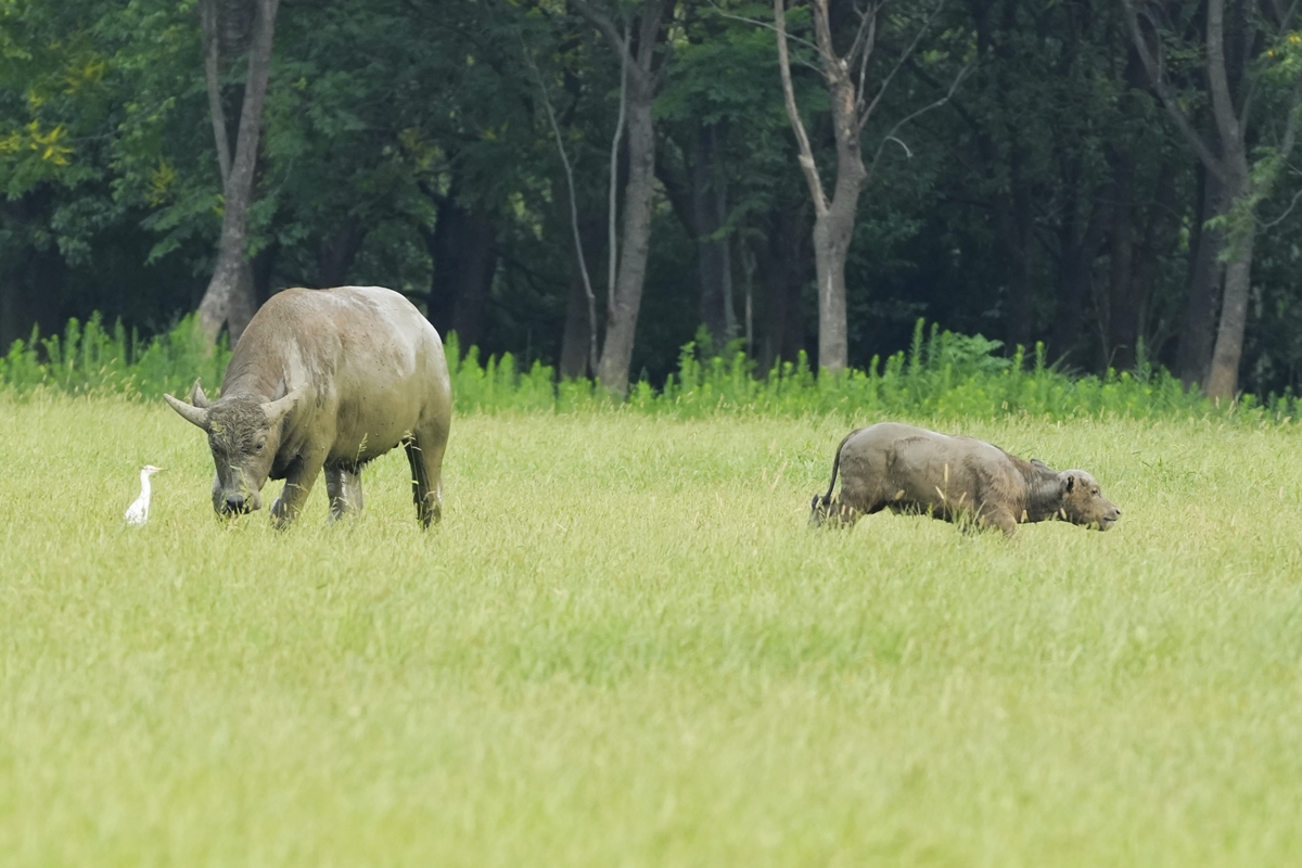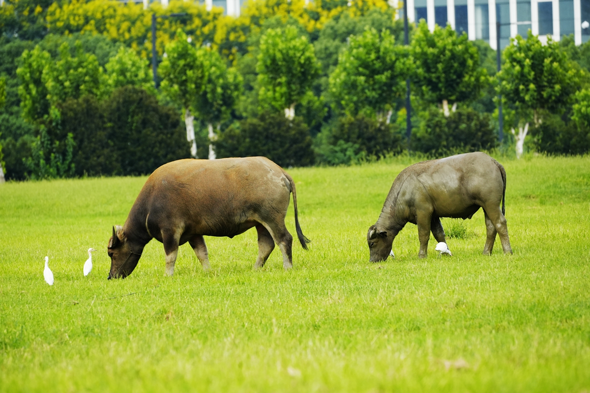 路过丁卯大䓍地,牛丁兴旺,䓍长鹭飞,捏几张
