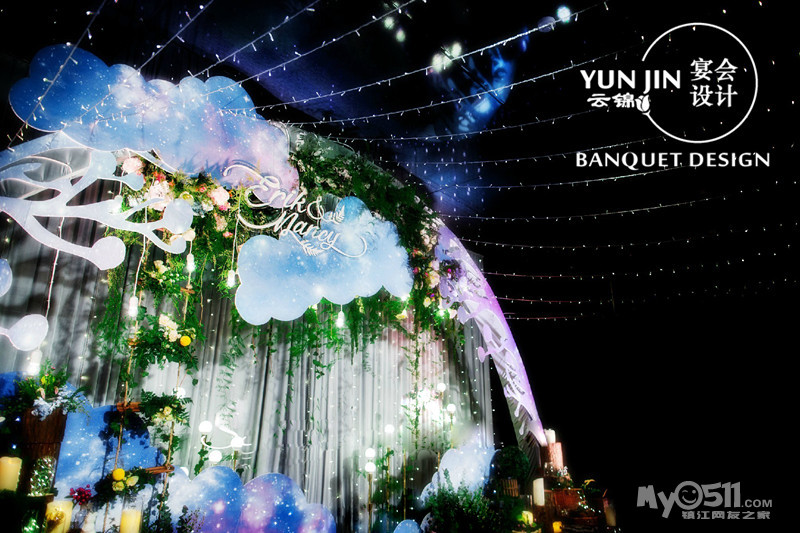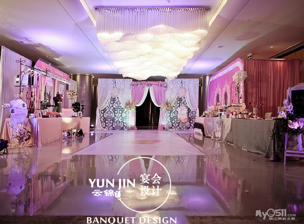 云锦婚礼会馆, 专业一站式婚庆礼仪服务机构,专业承办中高端婚礼的策划、布置等设有:婚庆礼仪部、精品婚纱礼服馆、鲜花礼仪部、彩妆工作室、上海球迷气球镇江分部、专业的策划团队、国内顶尖司仪精英团队、摄像跟拍团队、资深彩妆师团队、灯光音像师团队
