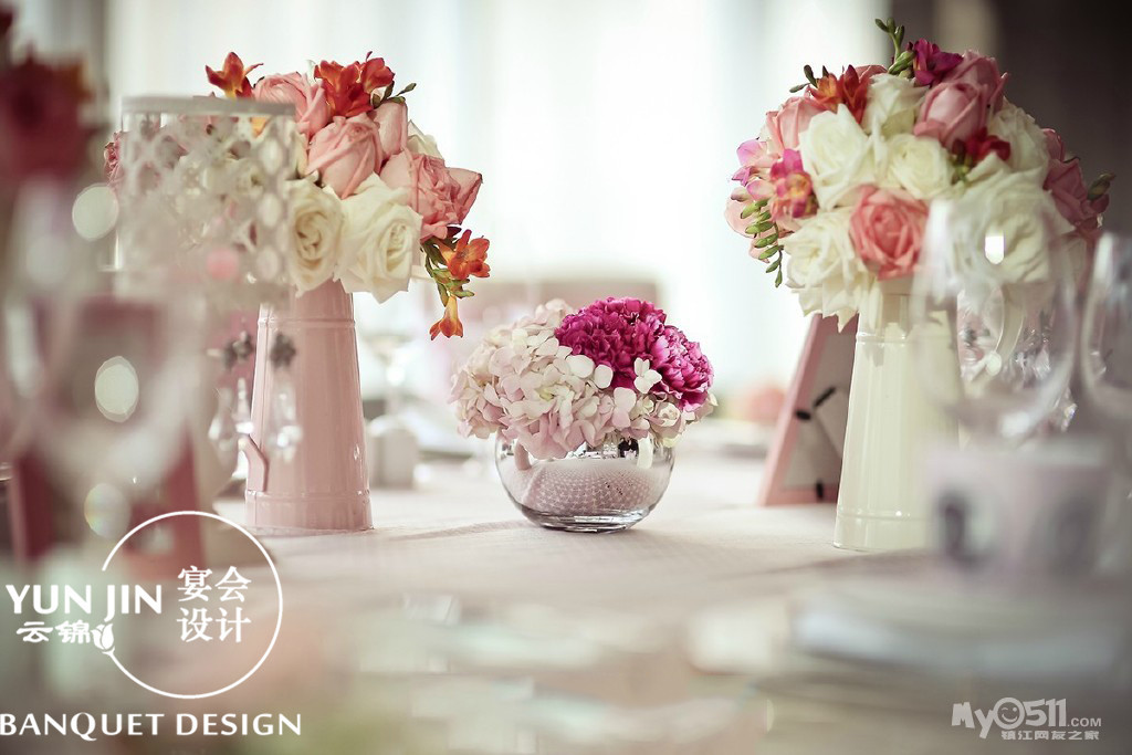 镇江味雅大酒店的粉色 + 香槟色系,粉色浪漫布置,唯美、时尚.....