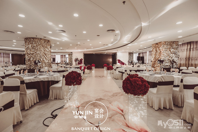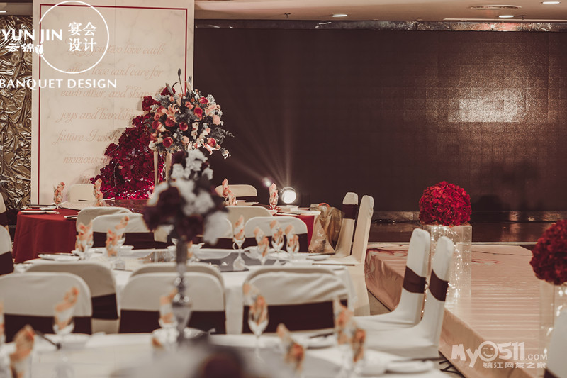 镇江国际饭店七楼 酒红香槟色系的鲜花婚礼,
