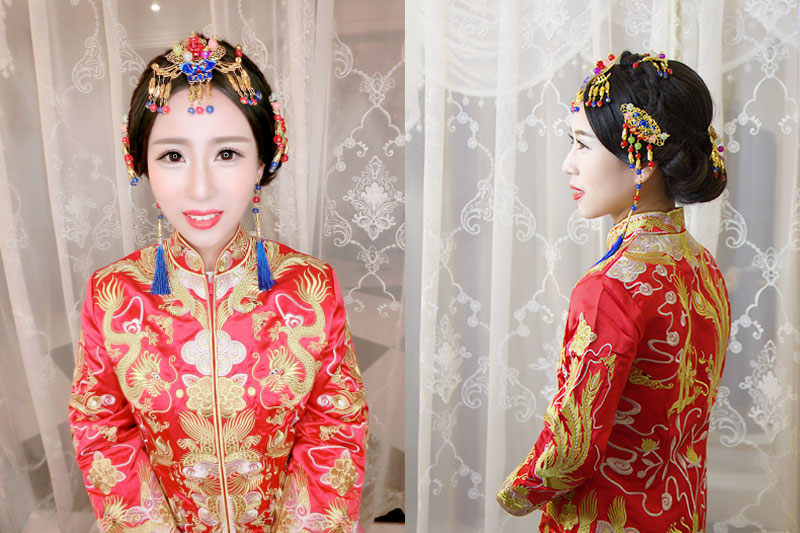 第一套造型由化妆师茵淇打造,首先为新人打造的是一款中式造型。现在很多新人都喜欢选择中式作为出门的造型!
