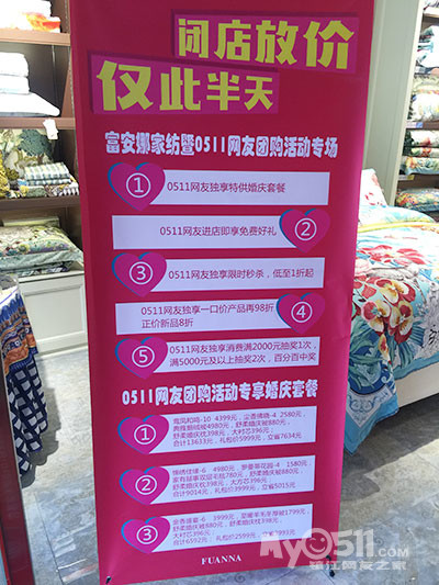 谈婚论嫁  >  [品牌广告] MY0511婚嫁第一期家纺团购——富安娜专场圆满结束,4小时成交量近20万 花絮来袭