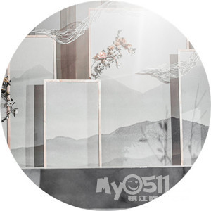 在配色和灵感元素的选取上极其考究,采用水墨和粉金的搭配,是现代和古韵的一次温柔的碰撞,“目”象形构造去打造空间的延伸,“山水”塑造写意山水的肆意洒脱,“木兰花”则负责优雅曼妙。