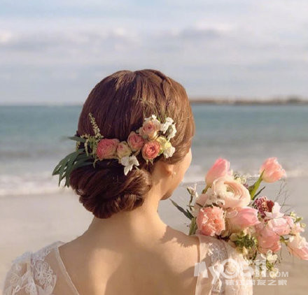 和婚纱绝配的韩系花式编发 配上白色的纱裙 太美了