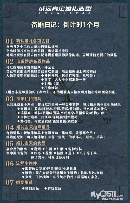 别着急,成远婚礼造型为新人宝宝们整理的超全备婚流程来咯,赶紧收藏起来吧