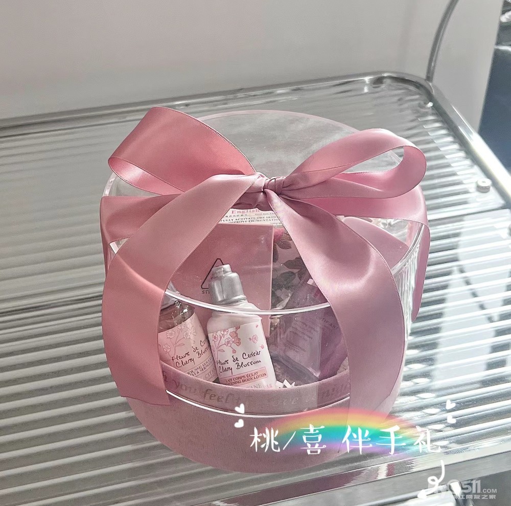 浅粉色丝绒礼盒、亚克力盖子、同粉色系丝带、搭配起来可真的是很让人尖叫
