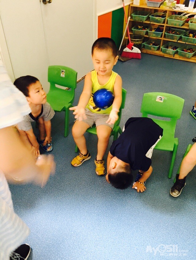 上午我们一起玩了抛接球的游戏