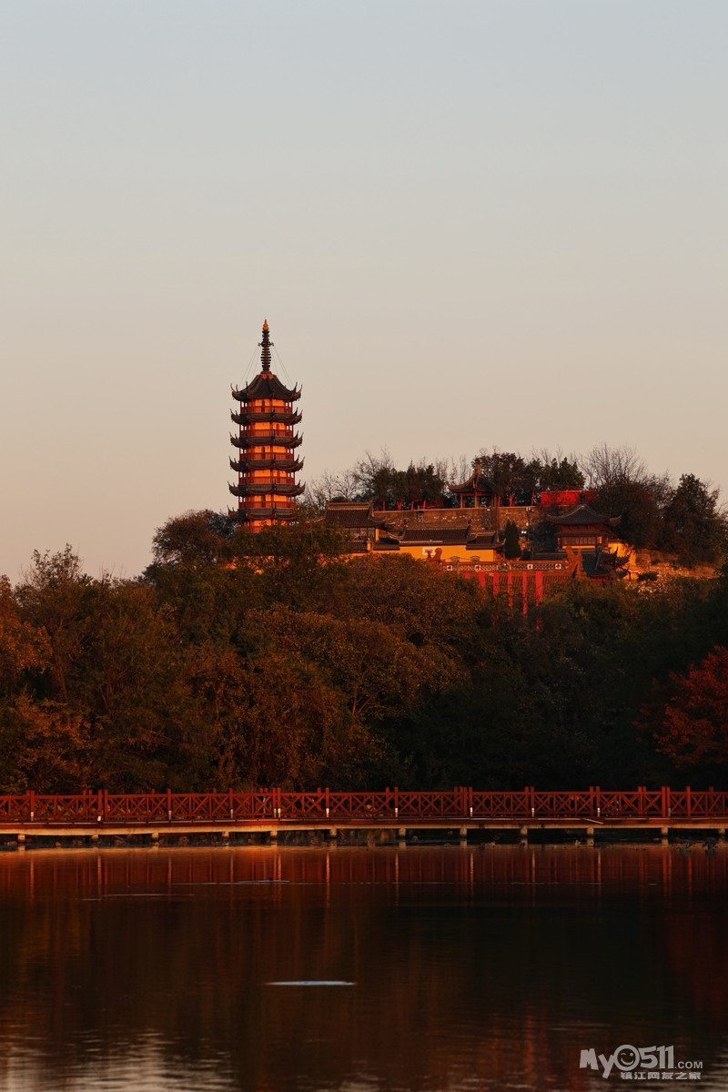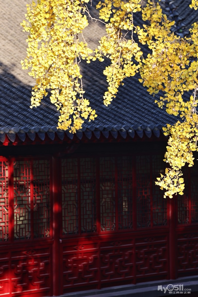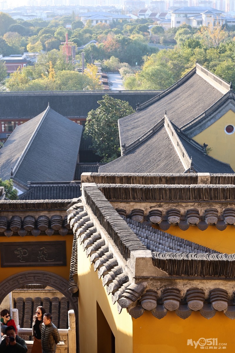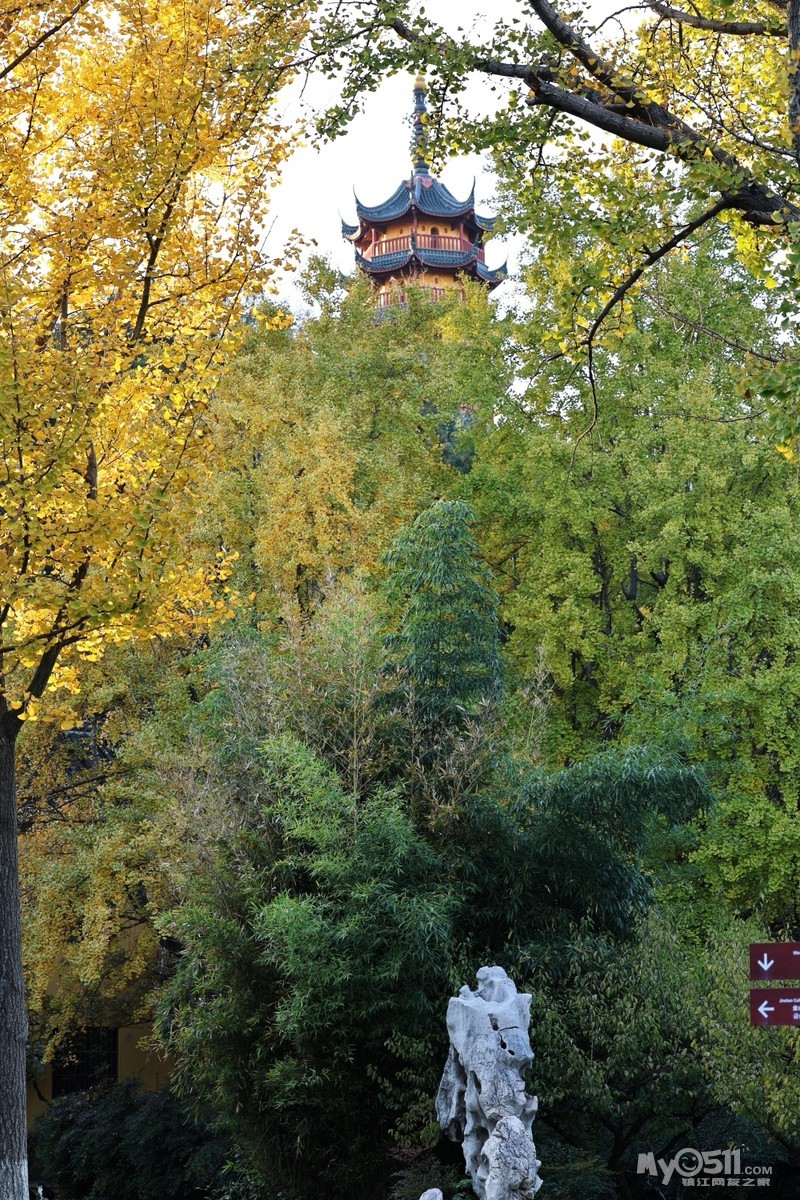 初冬的金山景区,阳光懒洋洋的洒在寺庙和湖面上,各种树木叶子染成各种颜色,风景绝美。
