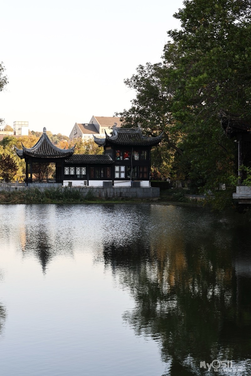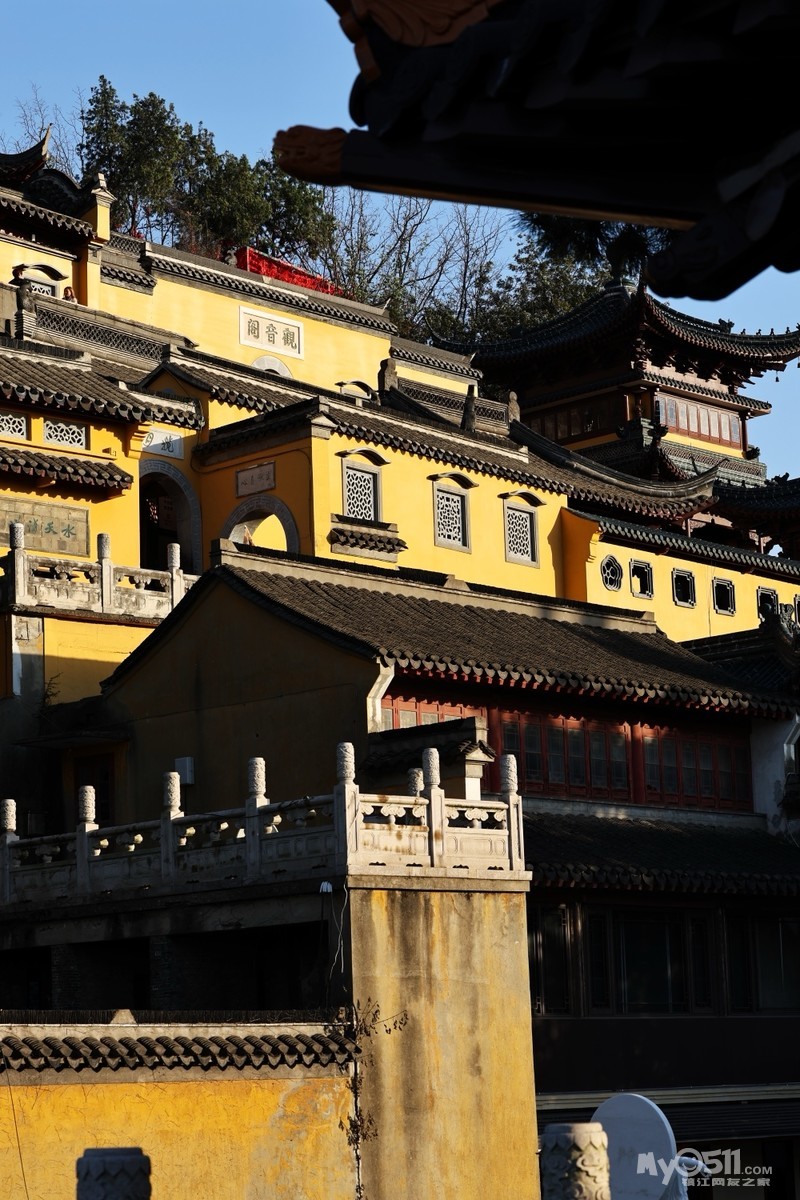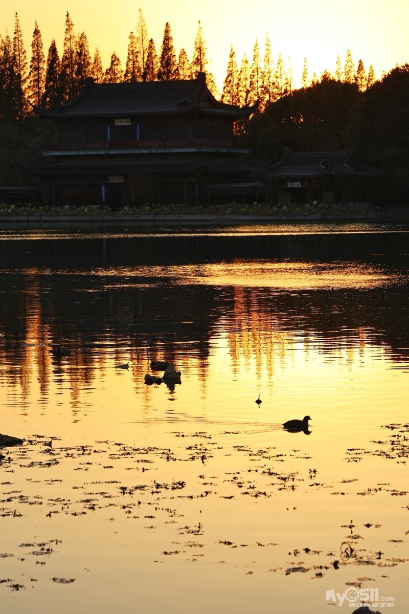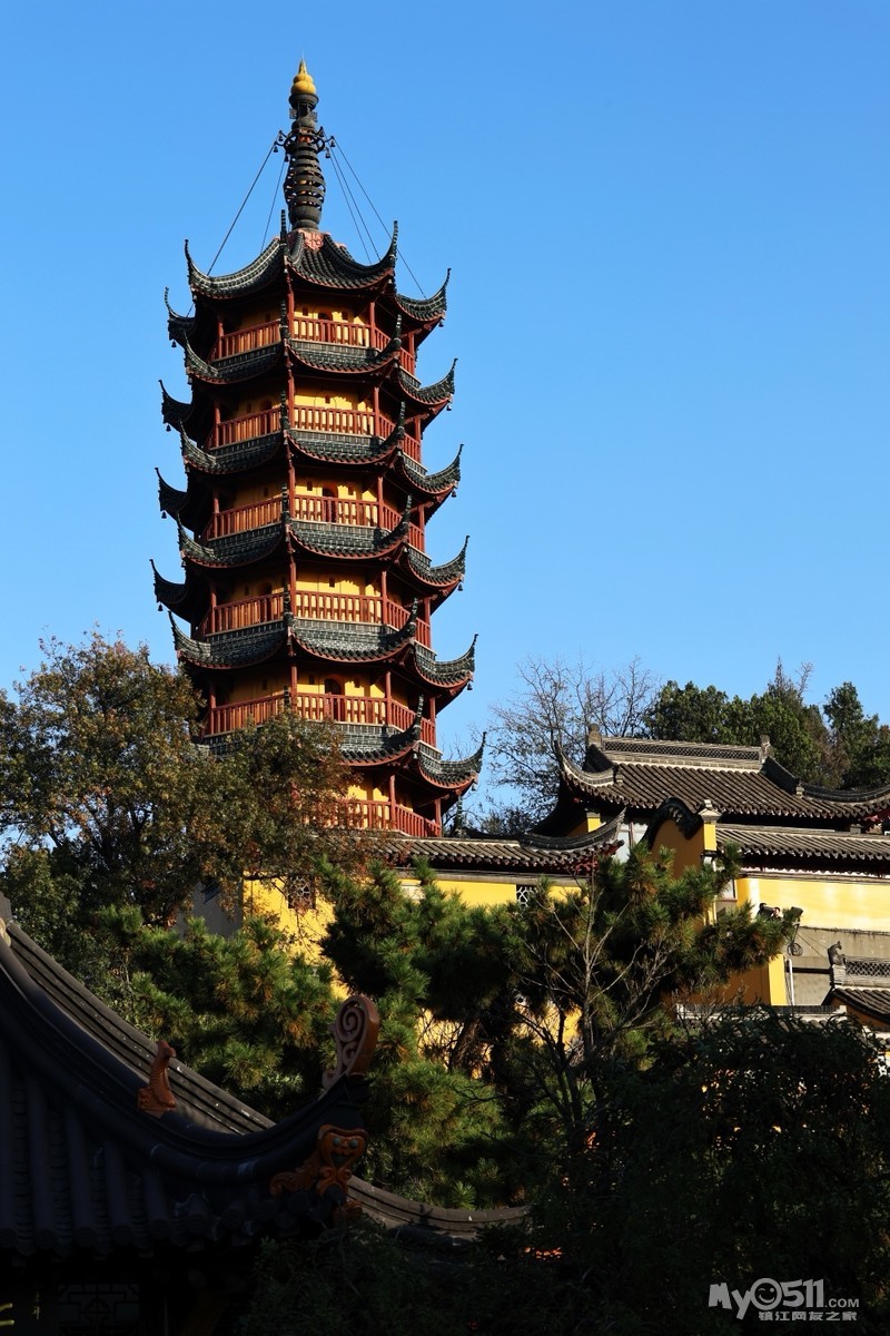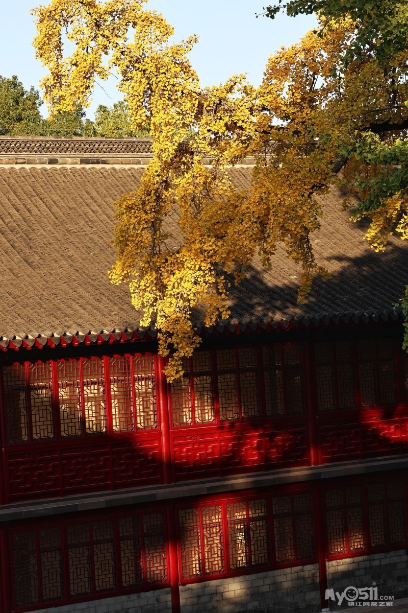 初冬的金山景区,阳光懒洋洋的洒在寺庙和湖面上,各种树木叶子染成各种颜色,风景绝美。