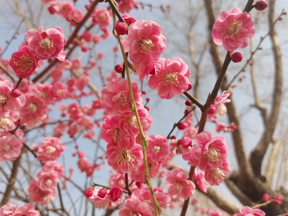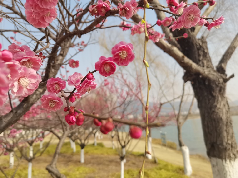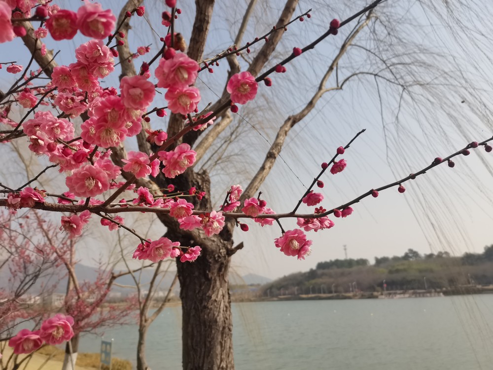 红梅怒放杨柳青