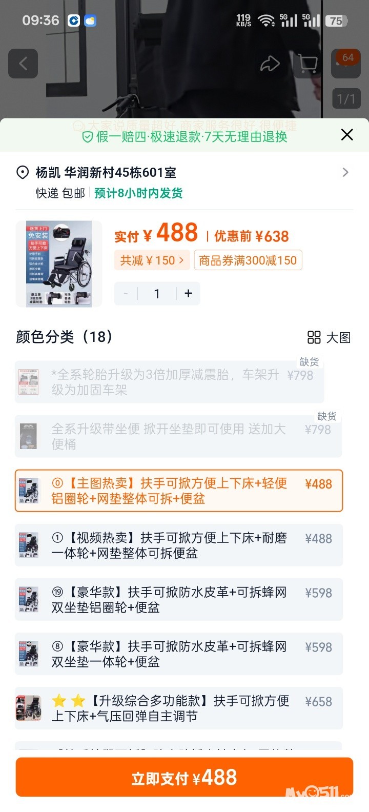 » 出一个全新高配轮椅,买了放家里一直没用,全新的,买来480现240转