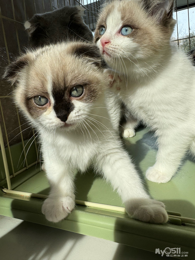 60+天布偶2只(已卖一只),折耳英短2只(串了)便宜转,会吃猫粮,会用猫砂,会用封闭式猫砂盆,活泼调皮,家里两只母猫暑假去朋友家借住几天,肚子都被搞大了,下图小猫为同父异母兄弟姐妹