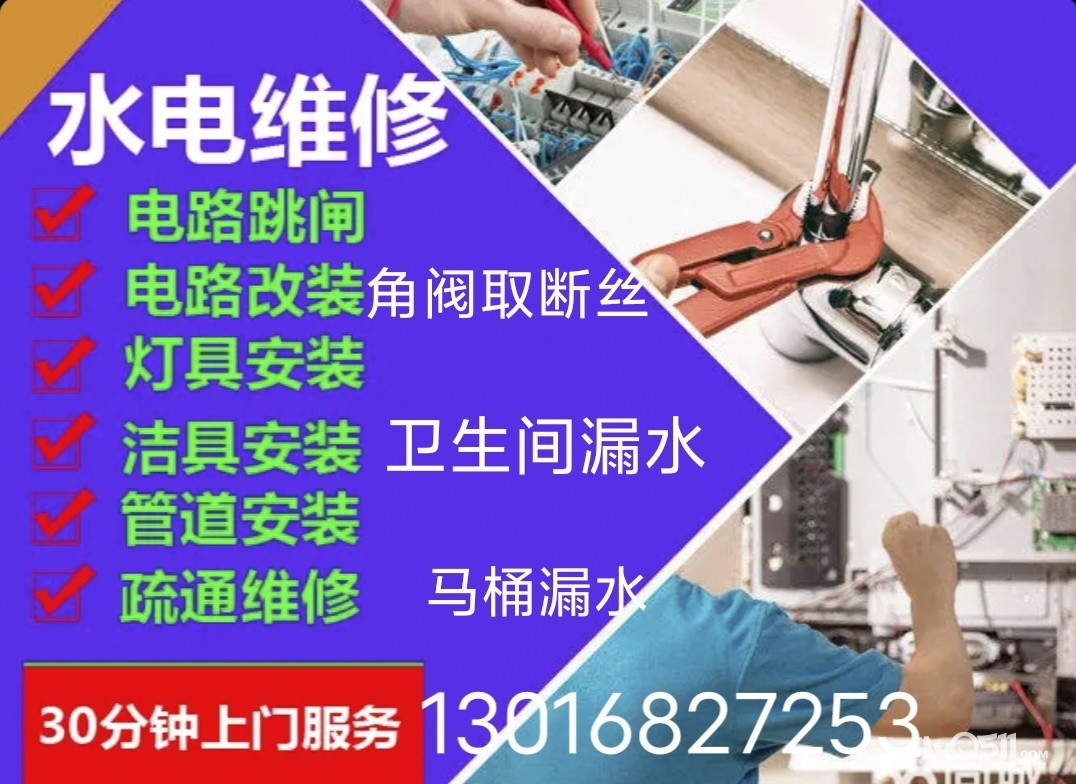 专业水电工维修跳闸漏电,角阀龙头马桶卫生间漏水检测13016827253疏通
