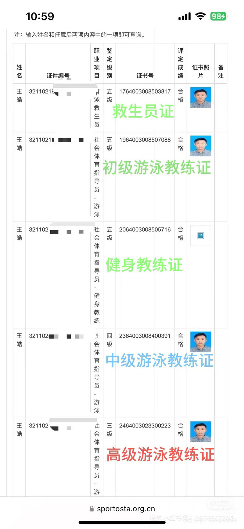 教练资质: 国家职业高级游泳教练