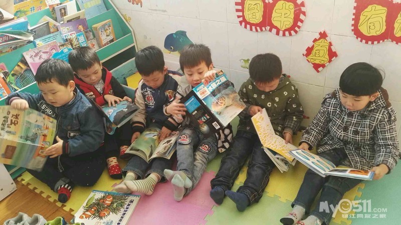 图书角的小朋友们正在安安静静的看着书,嘘,不要打扰他们哟!