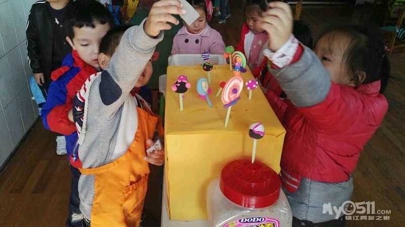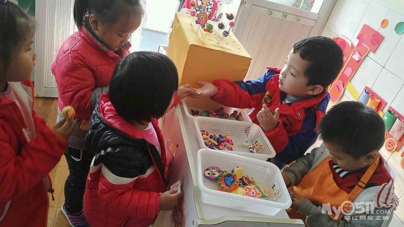小顾客们在买糖果的同时也在学习了点数,小营业员们正收钱呢!
