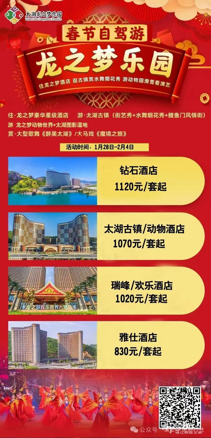 自驾套票 1月28日-2月4日 春节自驾 太湖龙之梦乐园