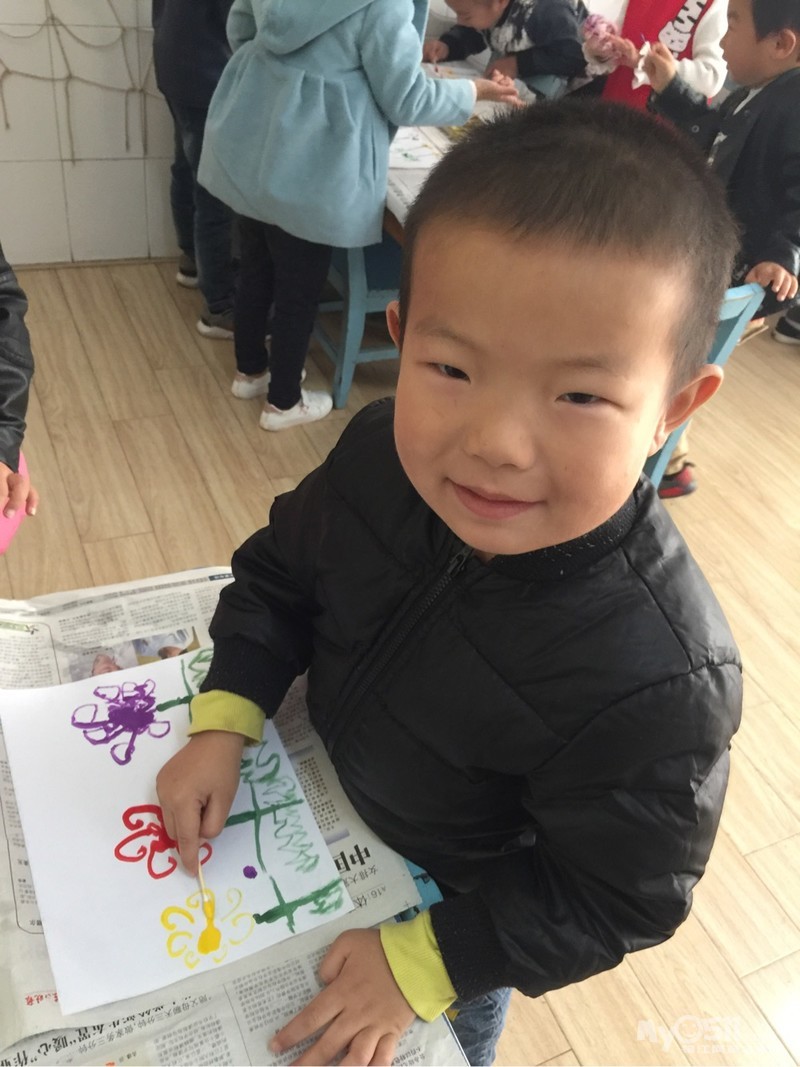 棉签画:菊花开了