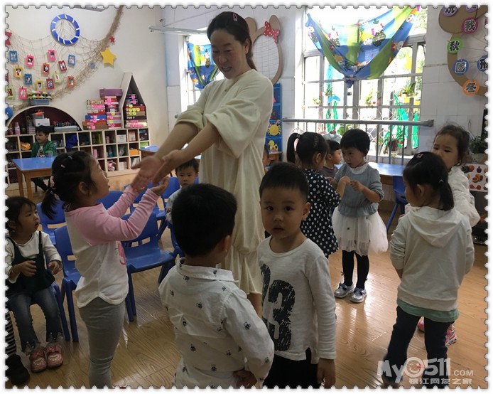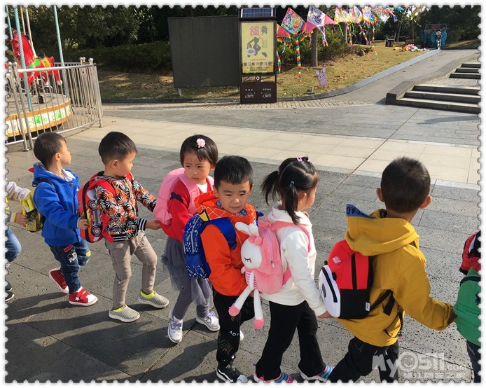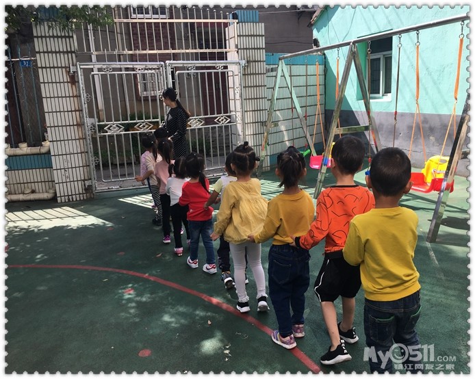 跟老师来吧!把小手伸过来,一手握住老师,一手牵起小朋友,你会发现老师的手和爸爸妈妈一样温暖,小朋友的关爱,会让你觉得更甜美。