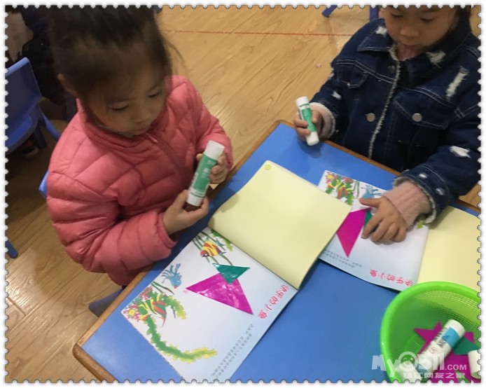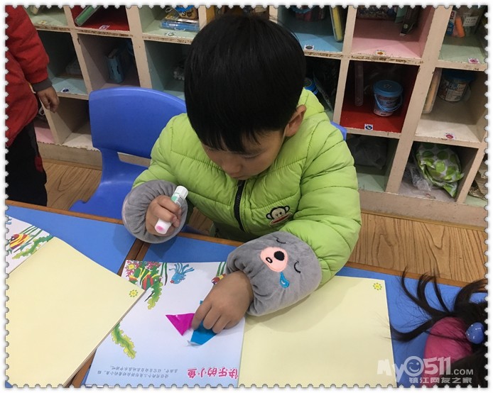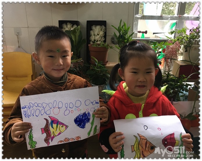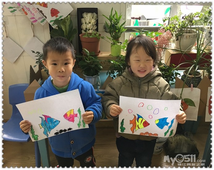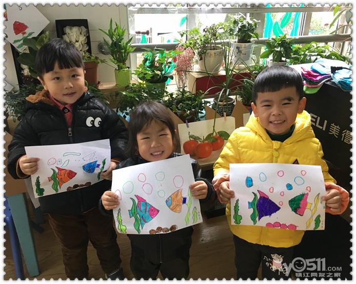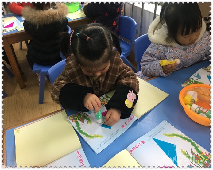 我们还会用三角形来粘贴小鱼呢!