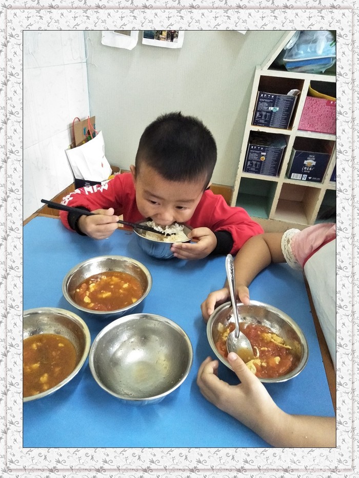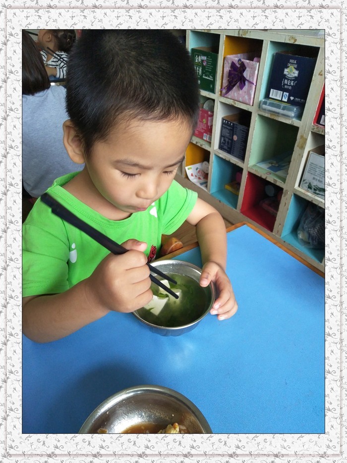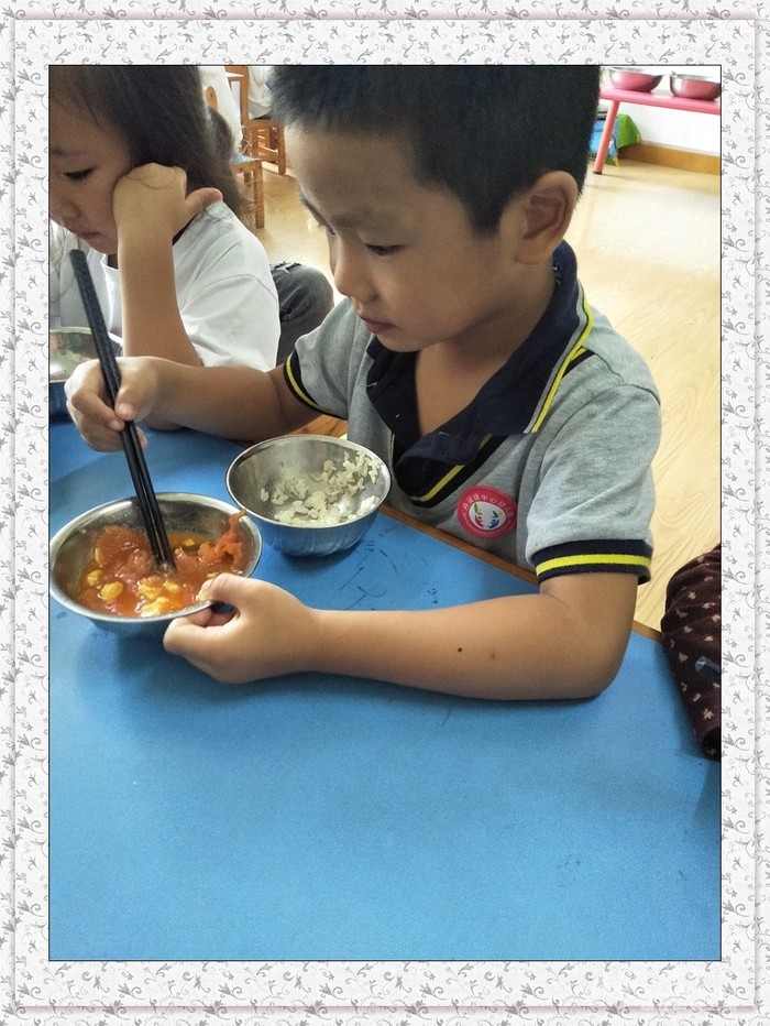 我会用筷子吃饭了