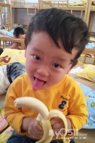 丹丹吃香蕉的方式还真特别 今天起床很早哦 没要老师喊