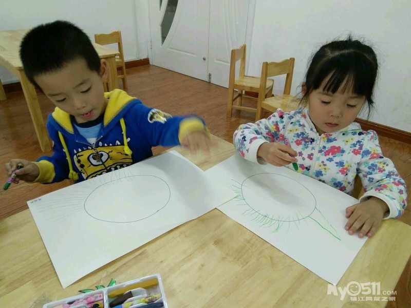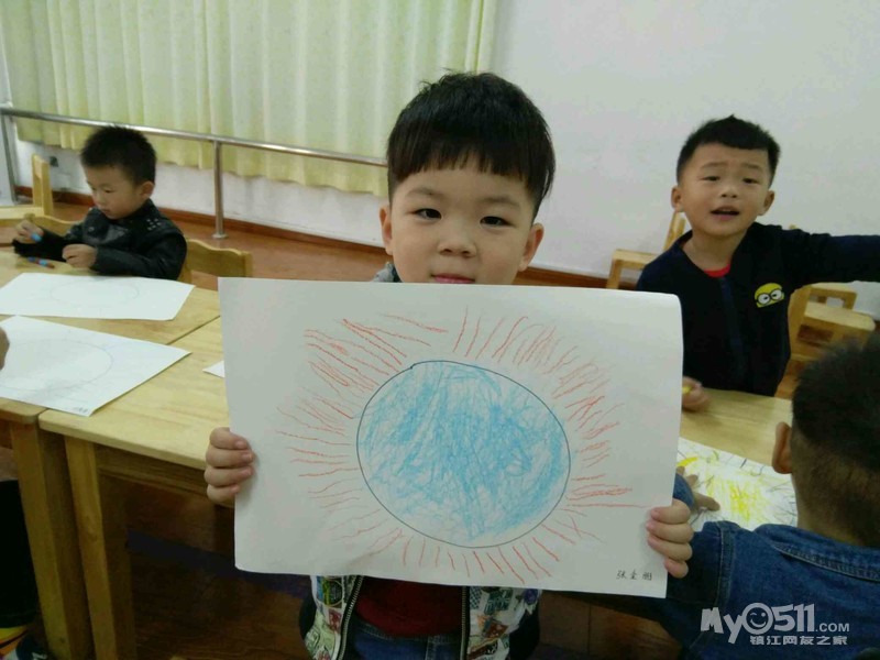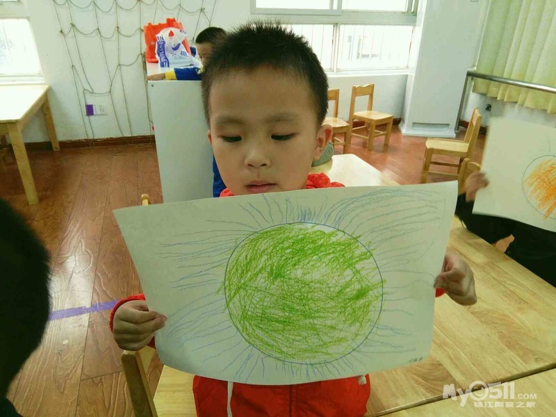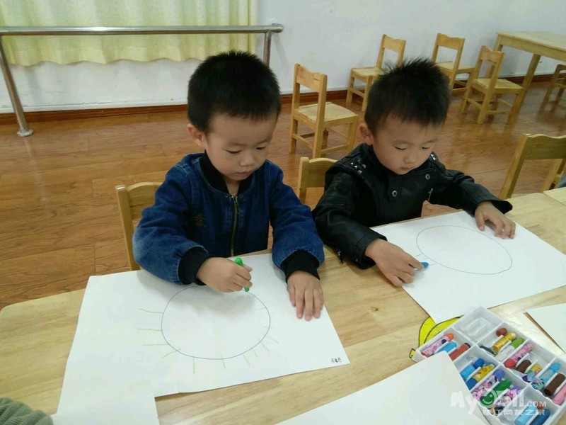 宝宝今天学画了,太阳,画光芒时要从里到外,一根一根去画,宝宝画的好认真。