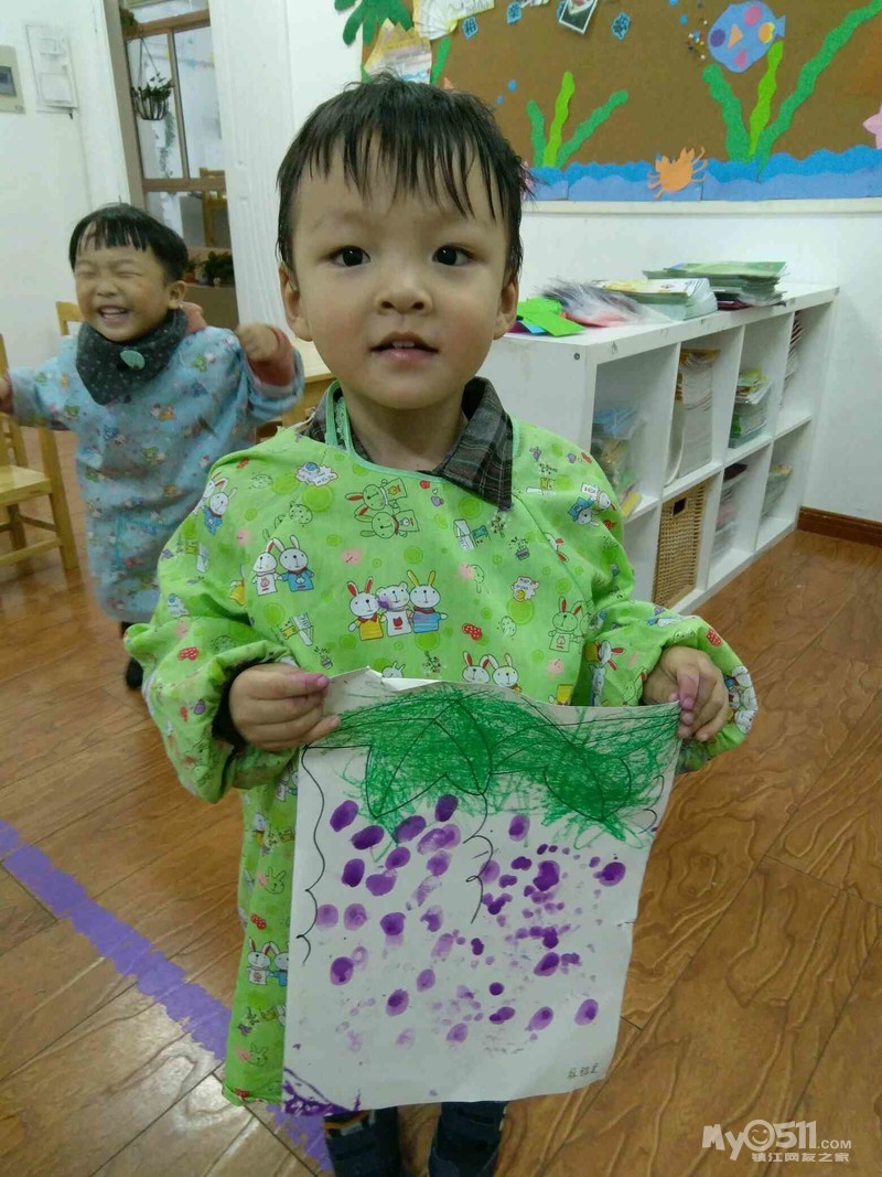 今天宝宝学习了手指点画‘美丽的葡萄’来看看宝宝的作品吧。