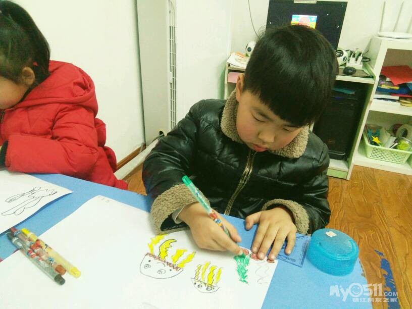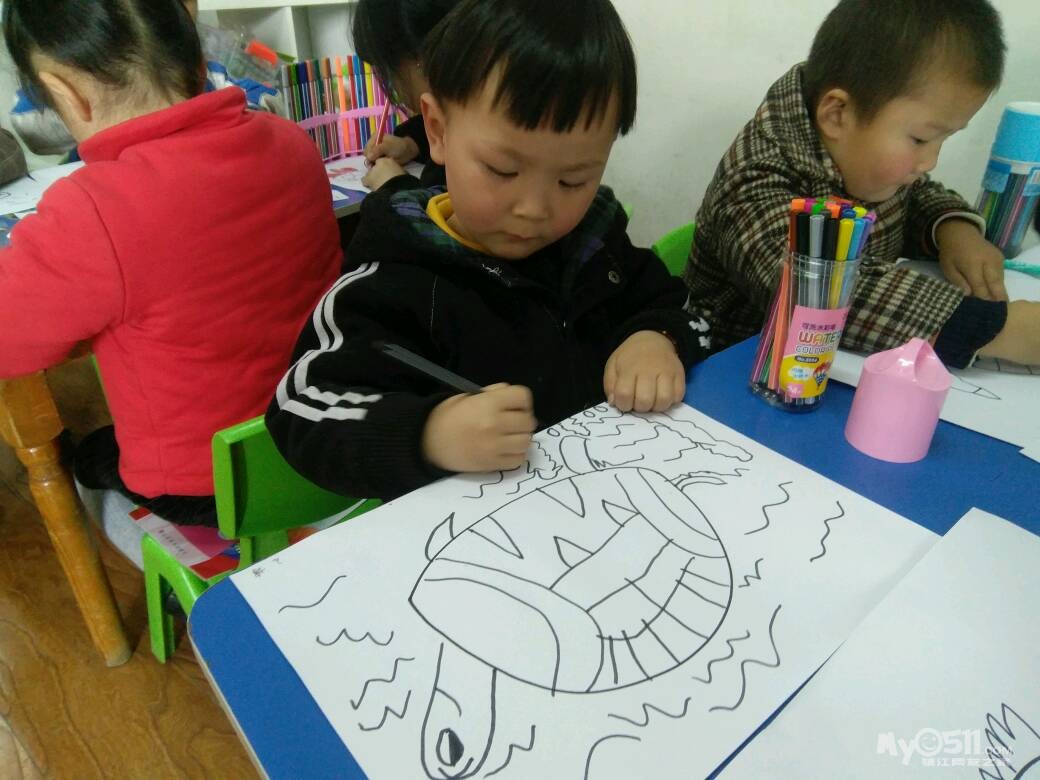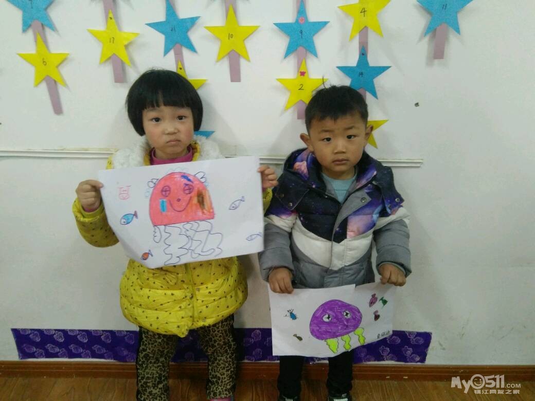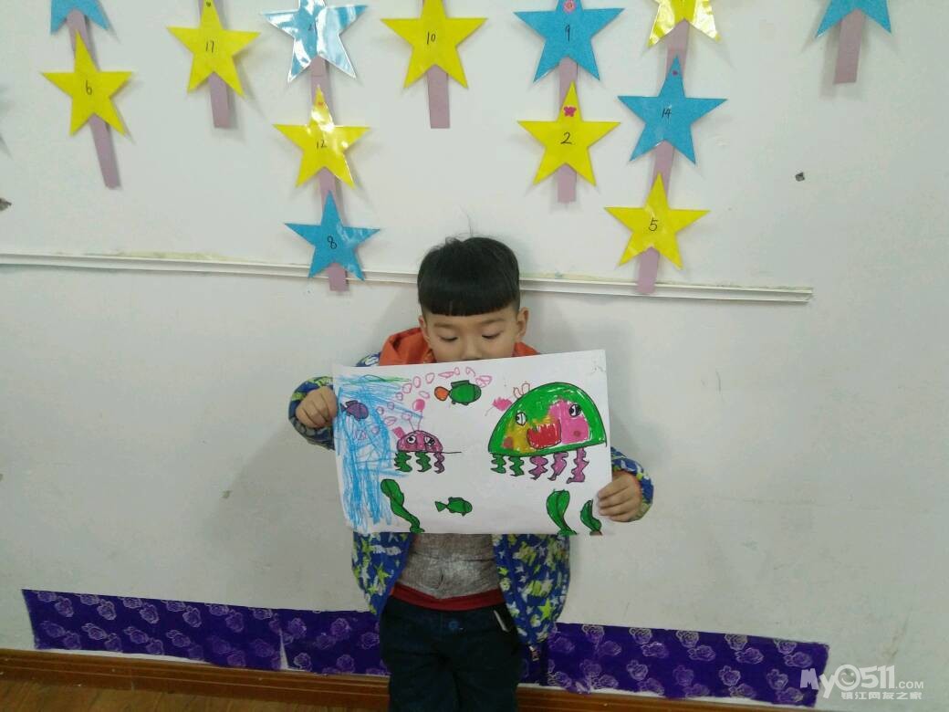 宝宝学习了“漂亮的水母”,水母分成了几部分,触角怎么画呢,来看看宝宝认真画画的样子吧!
