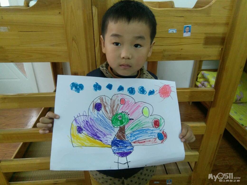 美丽的动物来了,快来看看宝宝画的动物是什么?_?对了,就是孔雀,让我们看看宝宝认真画画的样子吧!