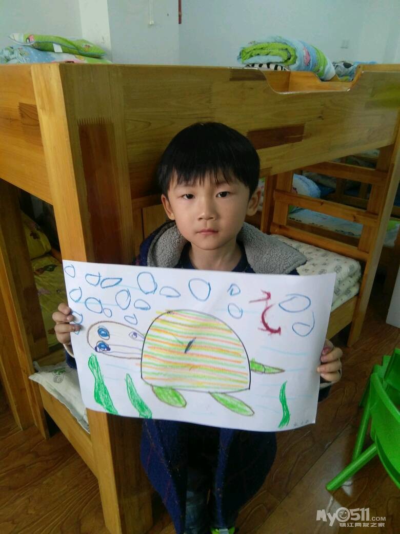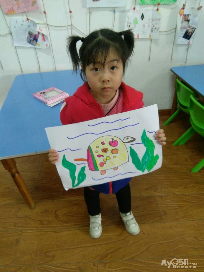 宝宝画了《可爱*^o^*的乌龟》还帮乌龟穿上了美丽的衣服,快来看看宝宝认真的样子吧!