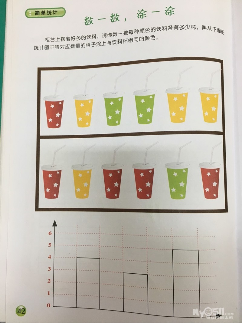 ⒈引导幼儿用数、贴的方法进行简单的统计,体验符号统计的方便。