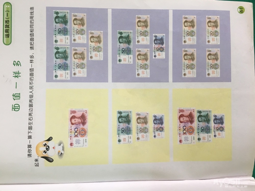 1、认识不同面值的人民币,能熟练、准确地辨别不同面值的人民币。