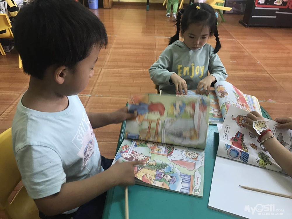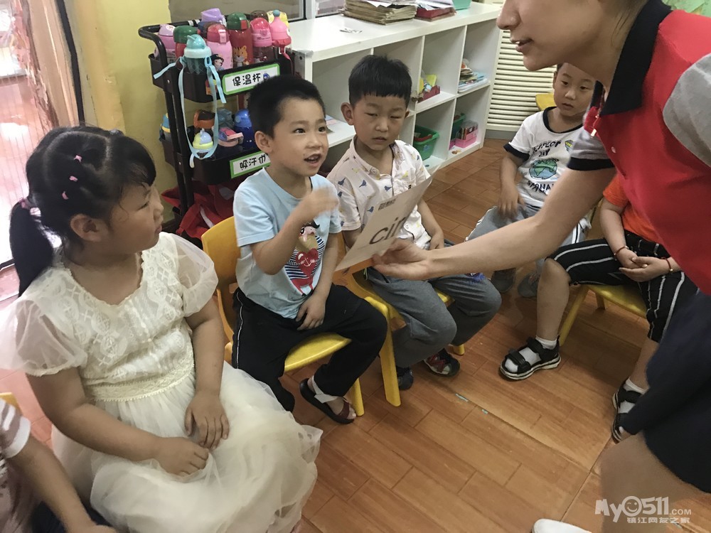 复习单词啦,小朋友们都很积极哦!