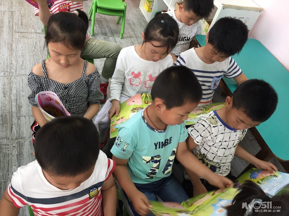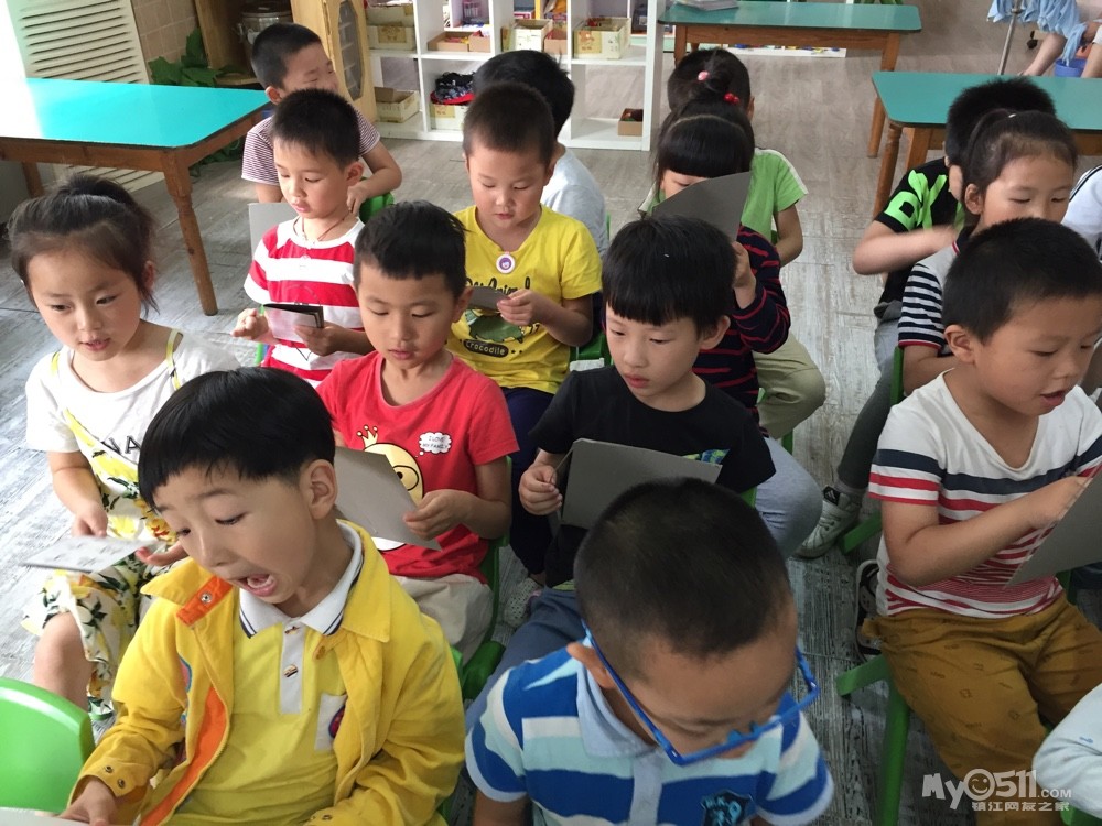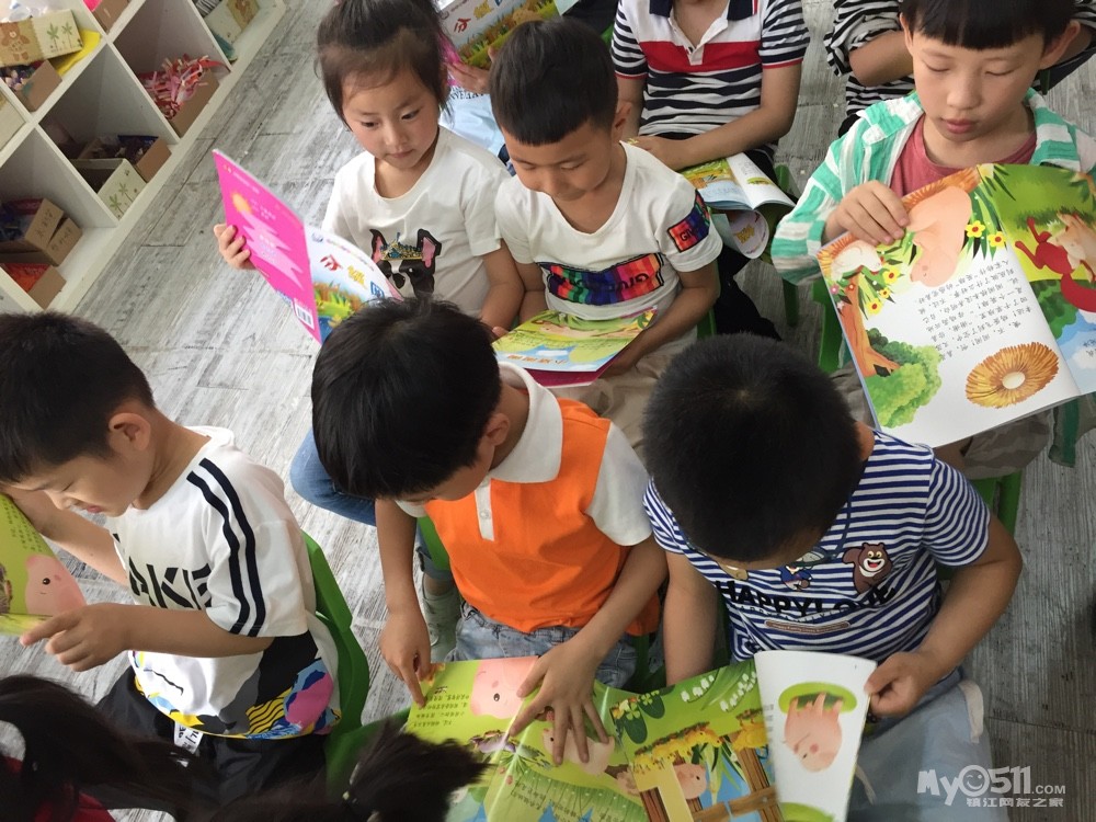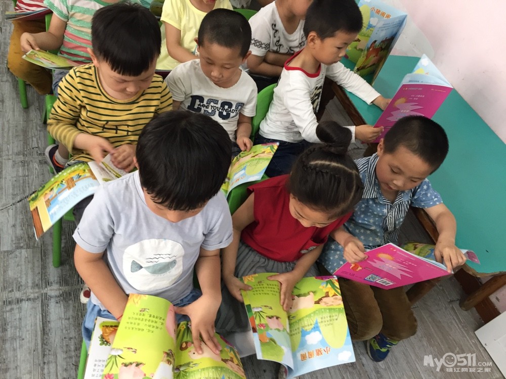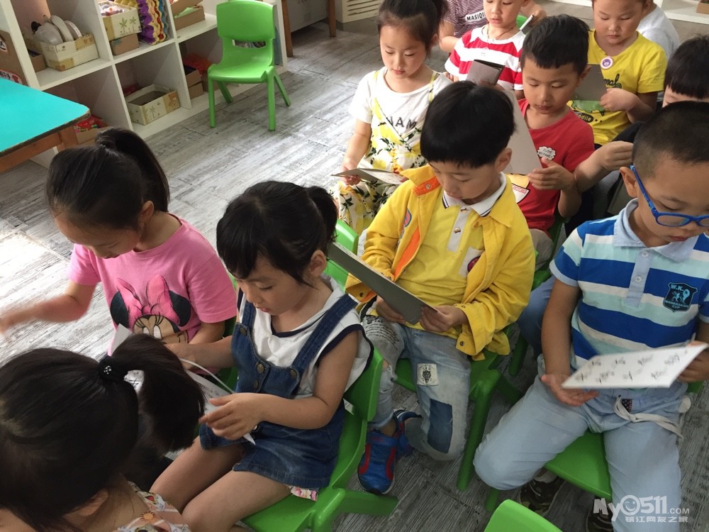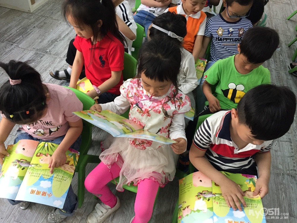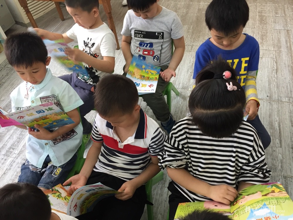 宝贝们在认真的复习故事,瞧!宝贝们边看边读
