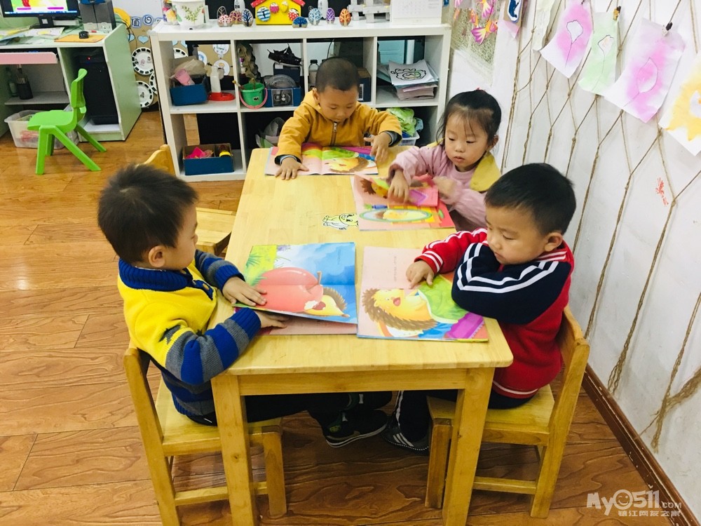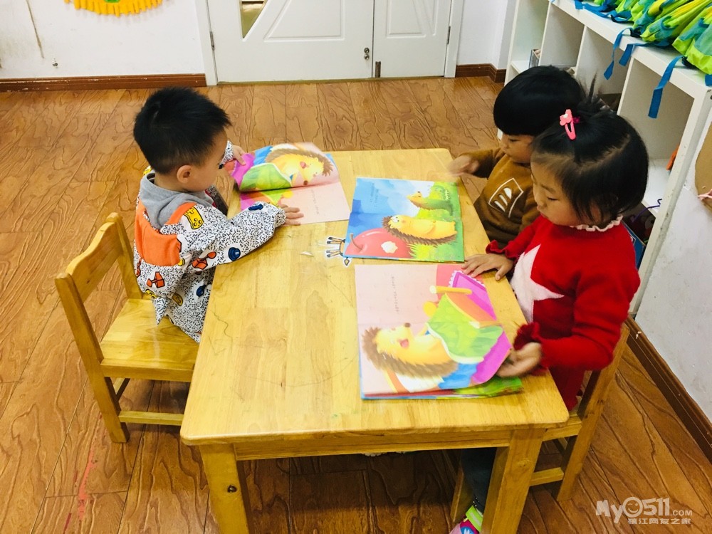 宝贝们拿着书和老师一起阅读…棒棒哒