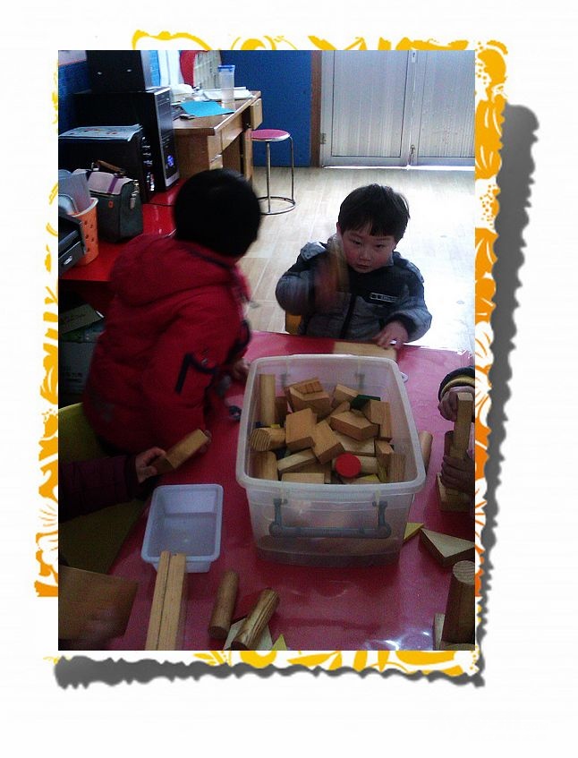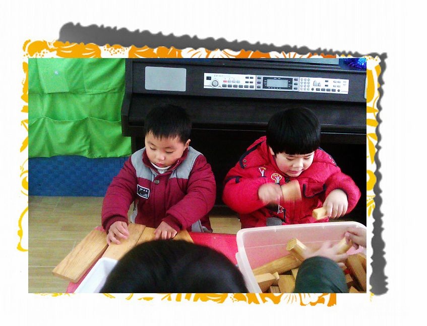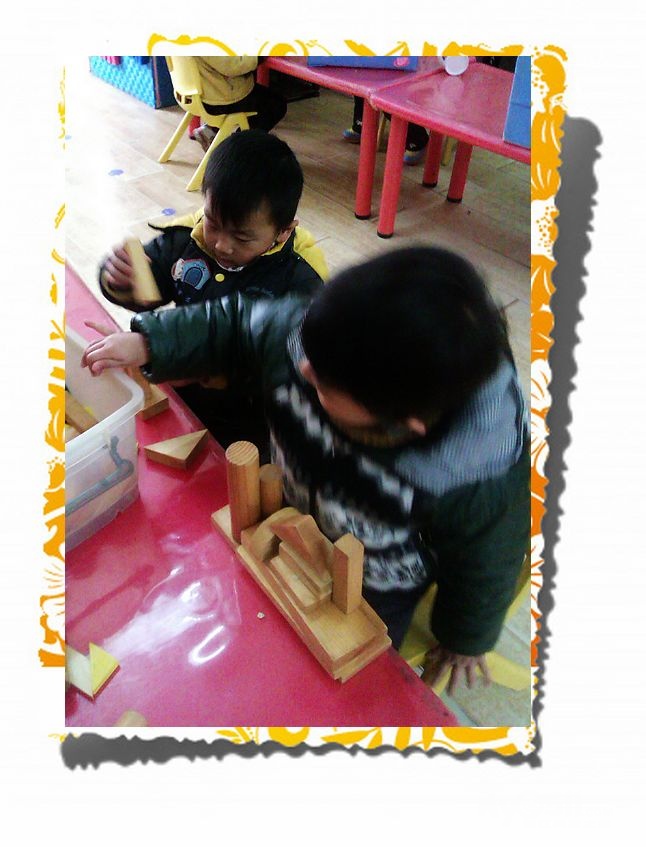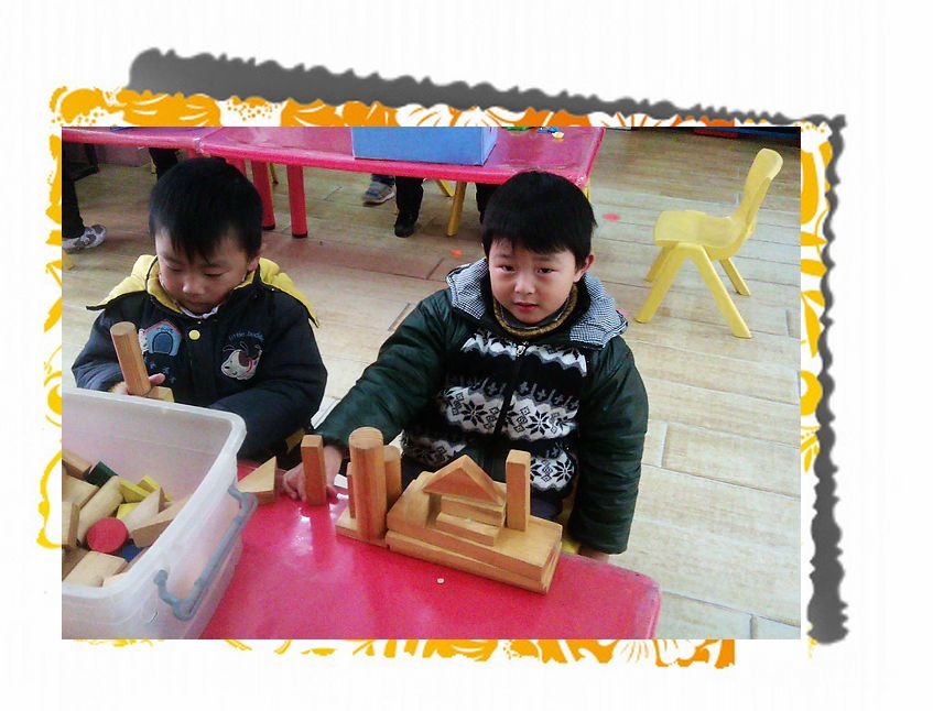 这是建构区的宝宝们他们在搭建房子呢!