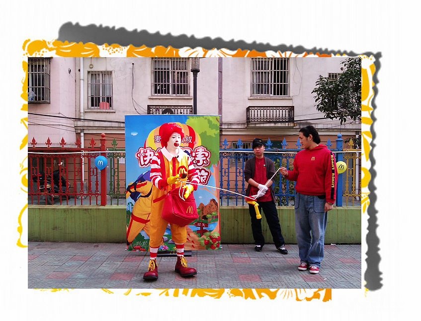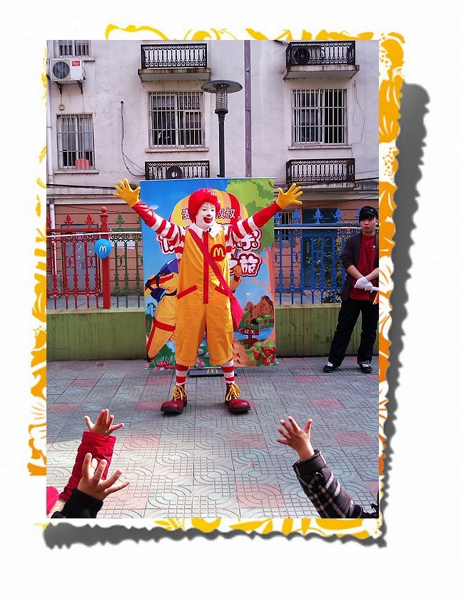 好不容易看到一张戎奕开心的照片,还是见到麦当劳叔叔!