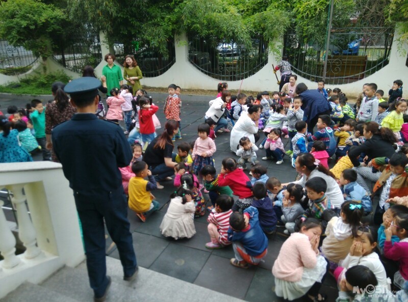 今天,全园师生井然有序的进行着日常活动,突然消防警报响起,在毫不知情的情况下,孩子们在老师的引导下,捂着口鼻,猫着腰,迅速跑到了操场抱头蹲下,进行了一场训练有素的应急疏散演练