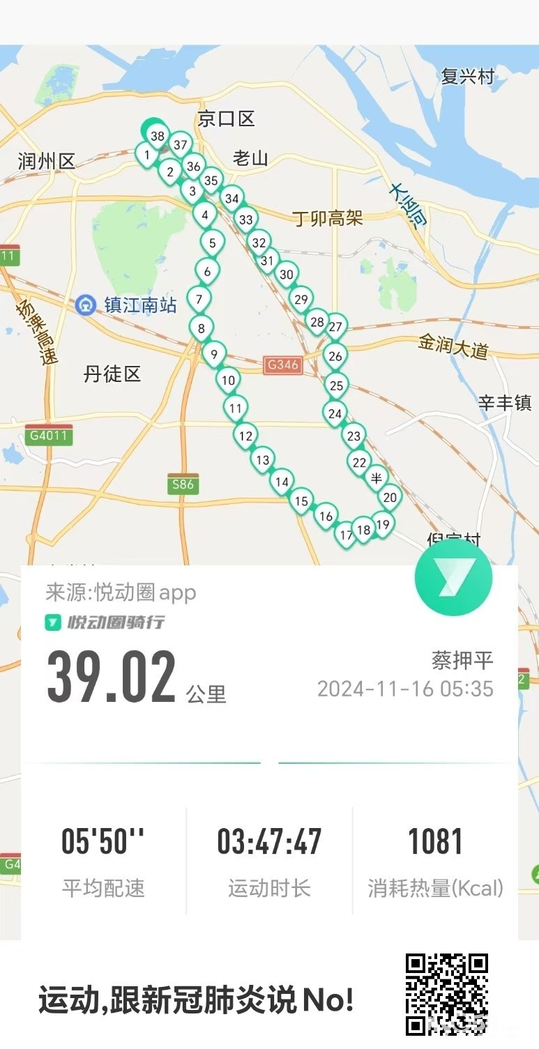 早5点36分出发沿健康路、黄山东路、官圹桥路、镇南路、谷湖路自湖滨村委会始在三个行政村骑行村村通,于9点20分平安到家。