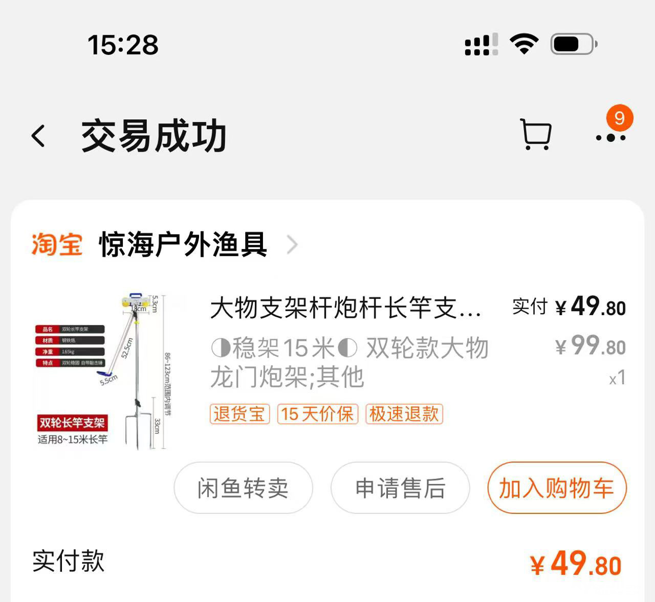 » 传统长竿双轮支架 拆开试用一次!价格30元