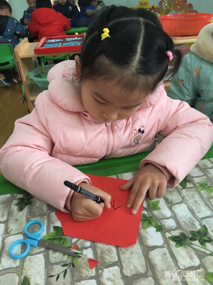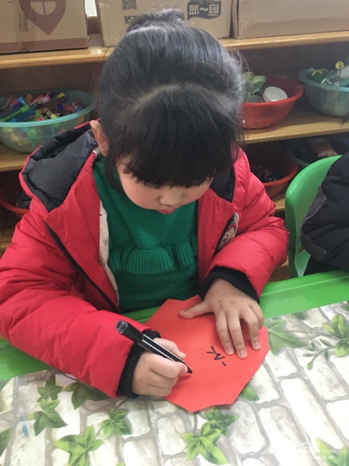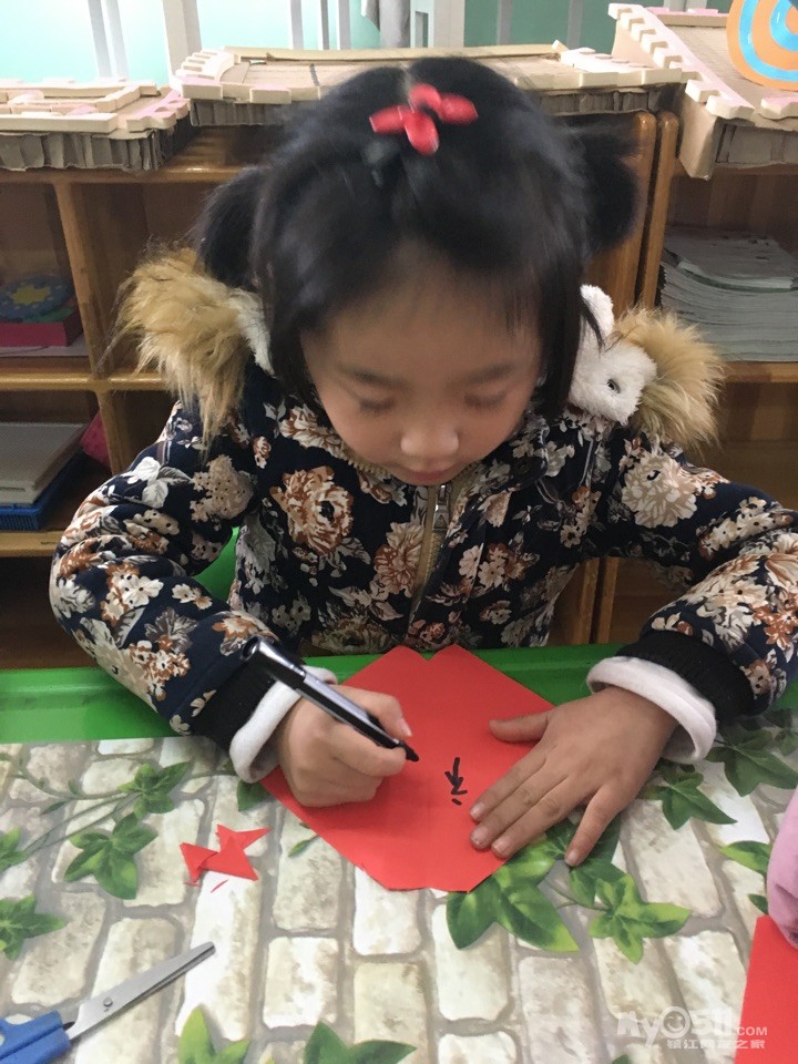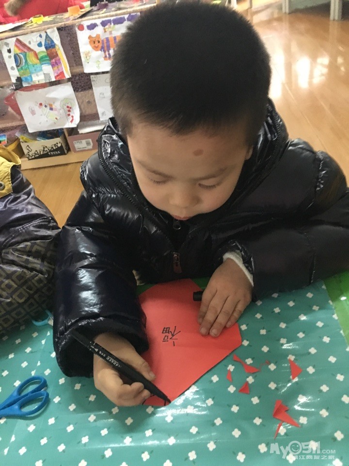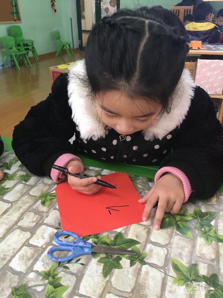 宝贝们在制作属于自己的“福”字
