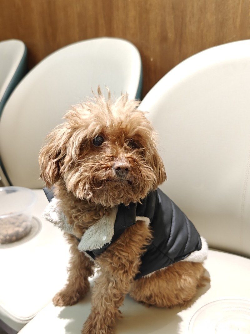 2025年1月17号晚在三茅宫老邻居饭店来了一只身穿黑色马甲的咖啡色小泰迪很可怜谁家的快来认领,联系电话18652855584