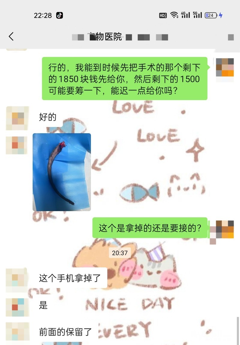 发的医生的聊天截图,现在截肢尾巴还差1.5k,和医生说可以迟点给,希望大家再帮帮忙。