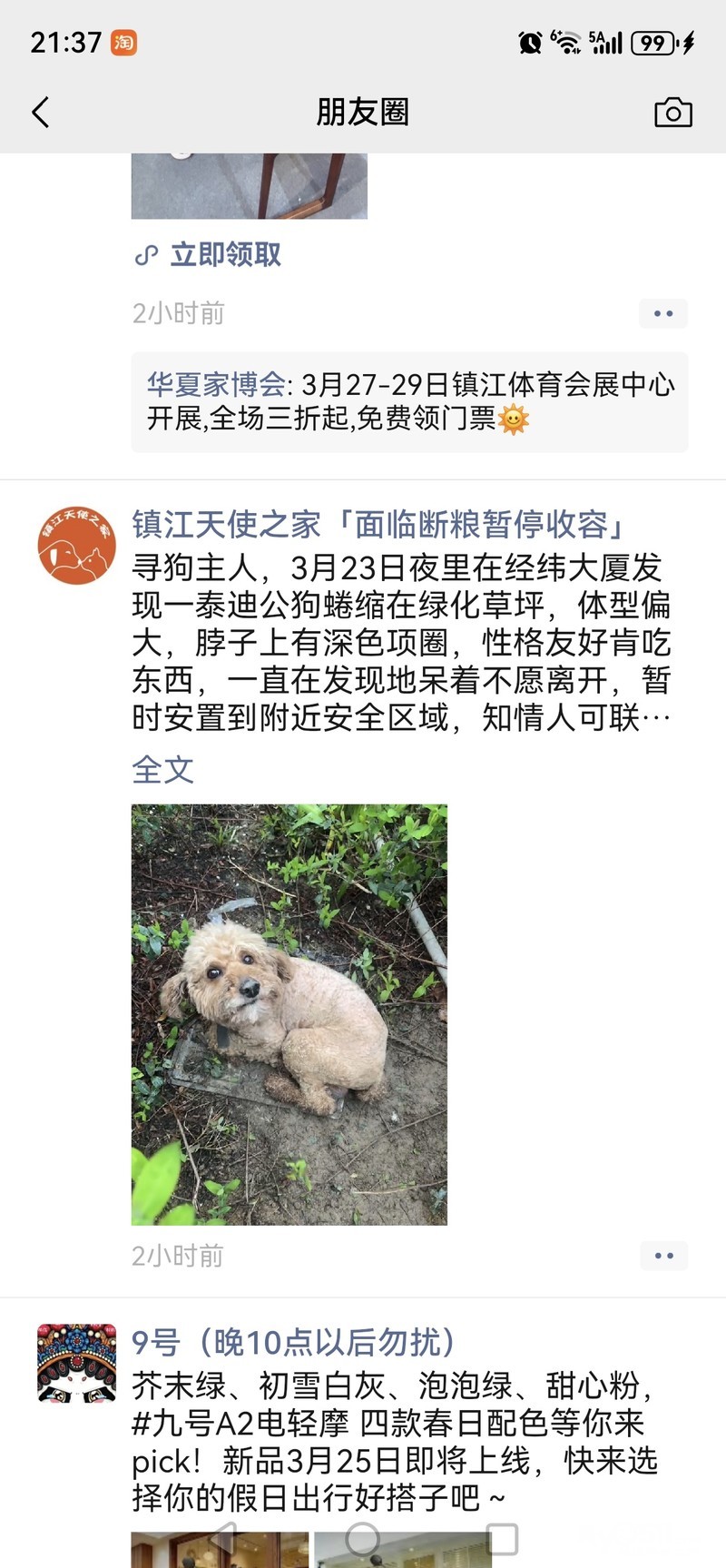 我今天早上8点多看到我窗户对面有一只很像你的狗,毛色一模一样,没有穿衣服,往丹徒方向走的,我不确定是不是你这只,我可以肯定毛色一样