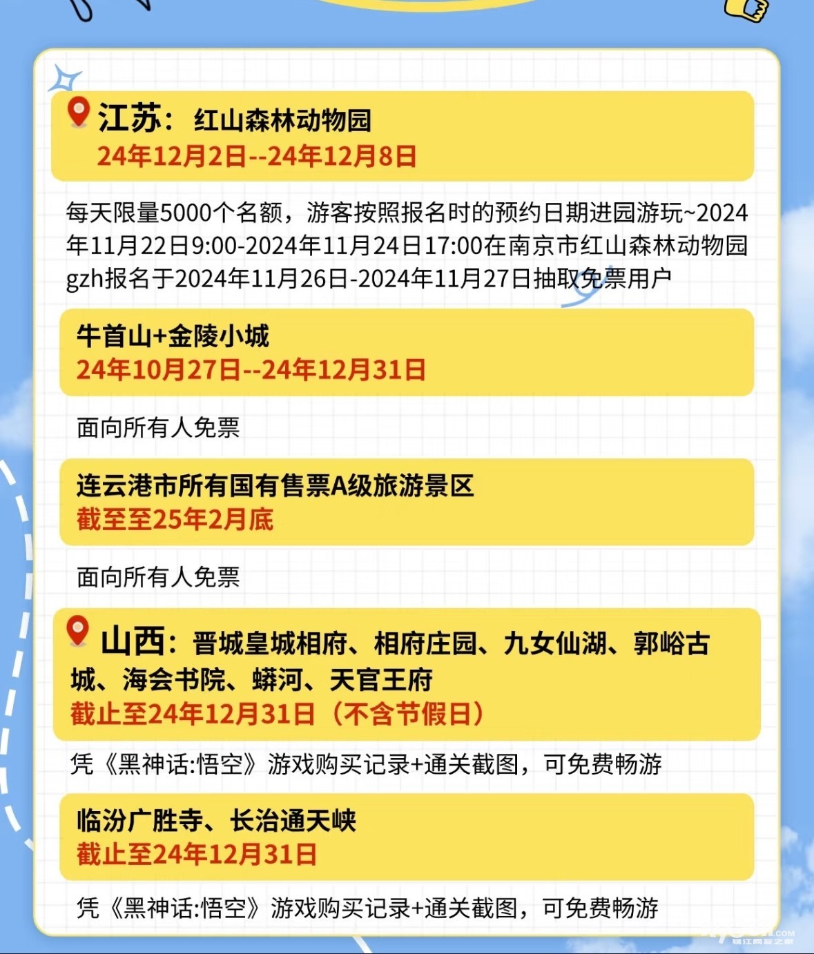 看了下12免门票,最有可能去的就是南京,安徽吧