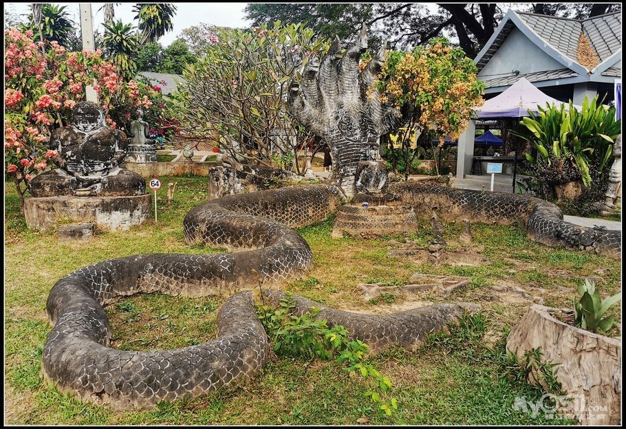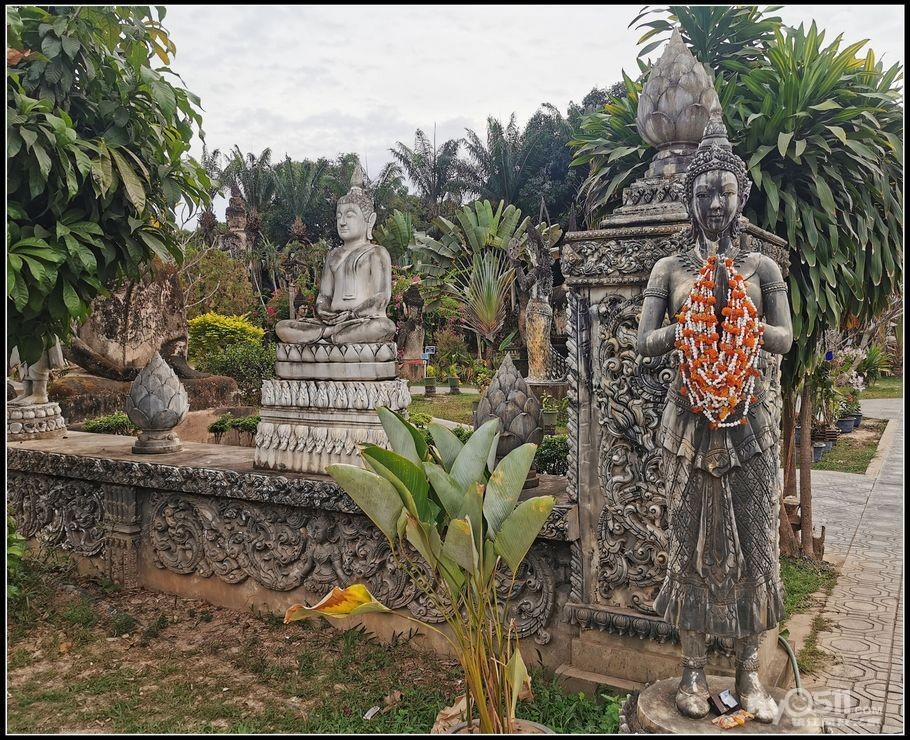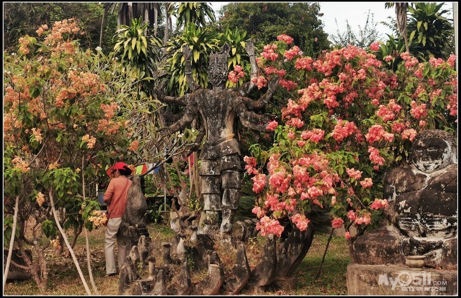 老挝香昆寺万佛公园是一处融合佛教与印度教文化的公园。"香昆"是"神灵之城"的意思,这座庙宇没有供奉佛像的殿堂,在大草坪上汇集了将近百座各式各样的佛像,佛像全部是水泥混凝土制成,香昆寺也被誉为"混凝土创造出来的。