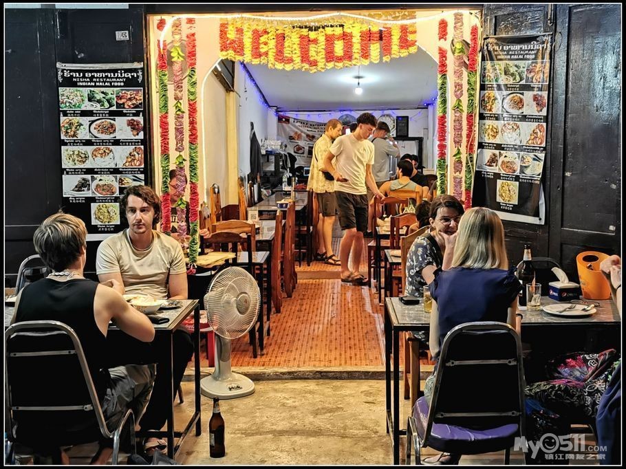 从万象到那勃拉邦马路上是尘土飞扬,街面上充斥着在此混生活的湖南人,景区的游客多为中国人,洋人街满是底层的欧美人, 皮卡、大货,特别是摩托见缝插针,不过大家都守规距。我们的小折车可以不锁,每天晚上就放在酒店门外,似乎没有小偷!