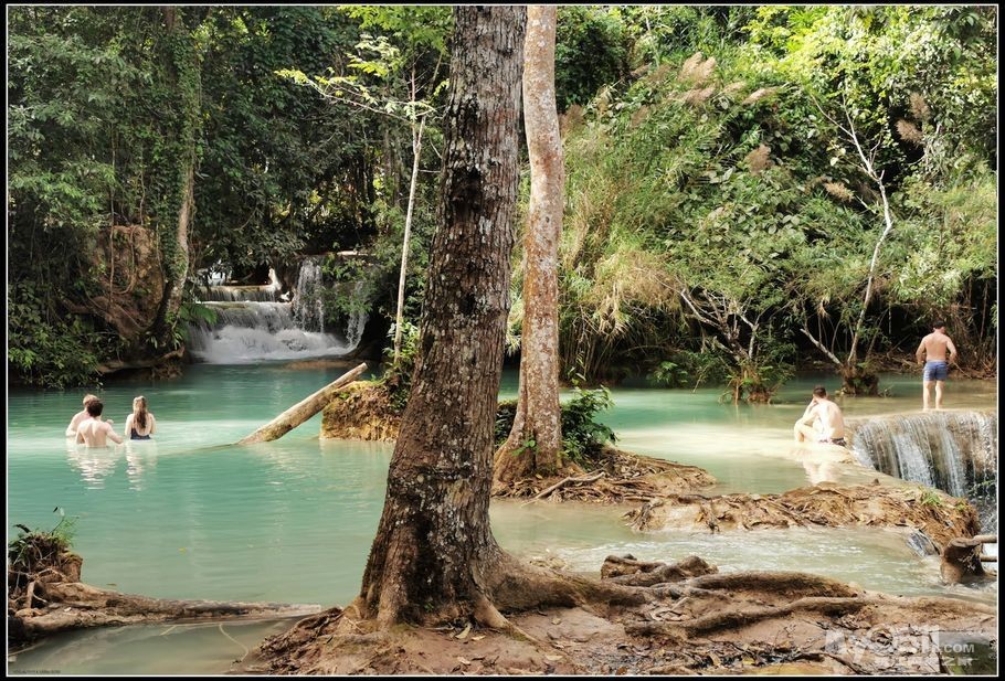 距离琅勃拉邦28公里的“关西瀑布”,关西瀑布是老挝著名的热带美丽风景区。
